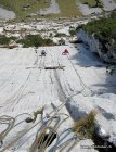 Es waren (zu) viele Leute am Mattstock unterwegs. Die Rücksichtnahme und Geduld blieb gelegentlich auf der Strecke. Es wurde in der Route überholt, Seile in der Route überkreuzt und über die Route abgeseilt wohl noch Leute darin im Aufstieg waren / es eine Abseilpiste gibt. Wer es ruhiger mag, sollte früh starten oder Tage mit weniger tollen Verhältnissen wählen.