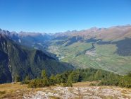 3. Eine sehr gute Rinne geht direkt vom Piz dal Cuatal nach SE in das Val da Vachas, wo man via Fuorcla Lunga durch das Val d'Assa zur Punt da Resgia (ÖV: Strada i. E. spv. Seraplana) absteigen kann. Dies wäre von diesem Gipfel aus die beste Abstiegsvariante.
