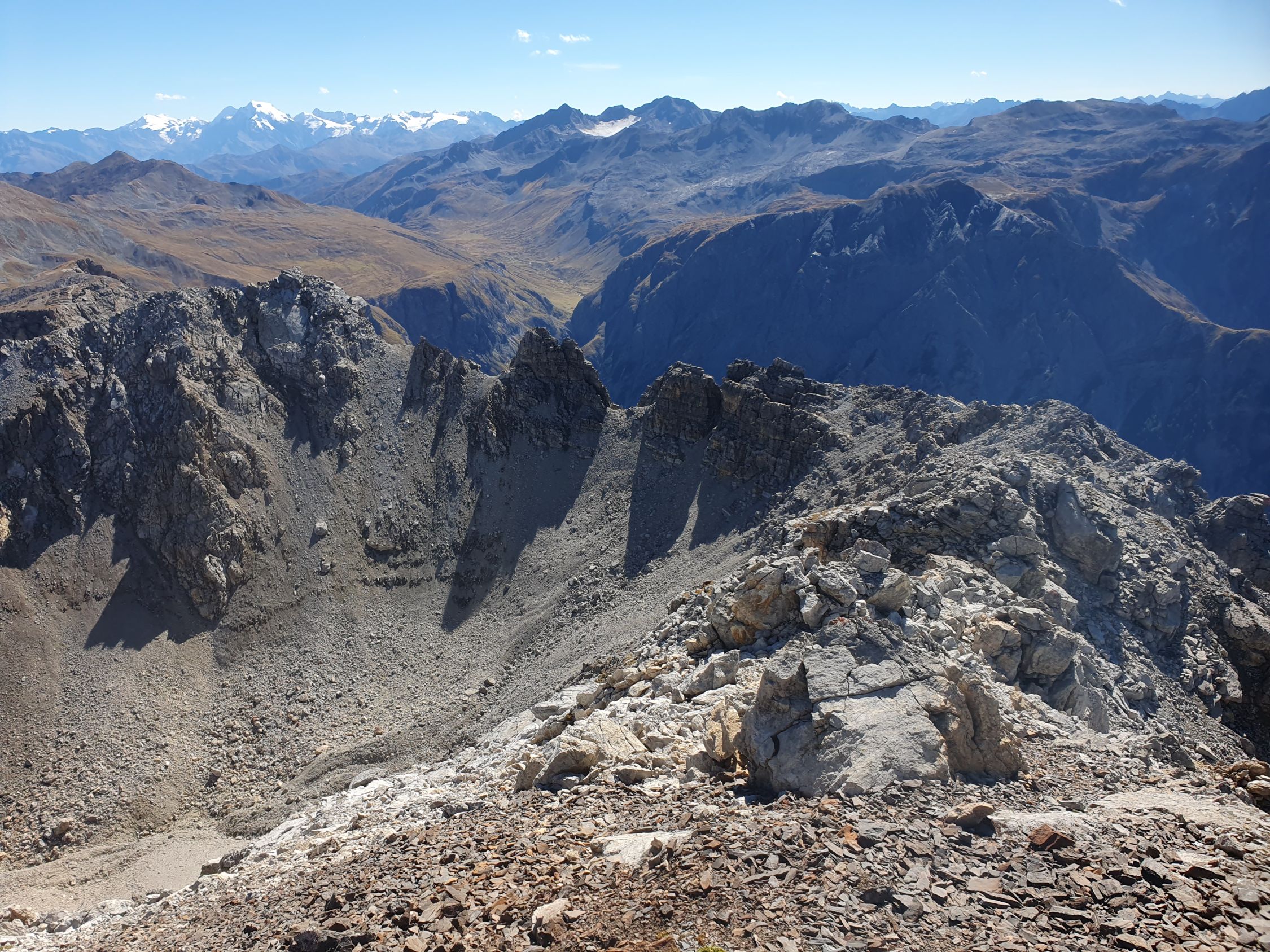 2. Der weitere Gratverlauf zum Piz dals Corvs ist aufgrund des P2890 nicht einsehbar. Ich nachhinein hätte ich kurz auf P2890 hochsteigen sollen um mir den weiteren Gratverlauf einzusehen.