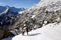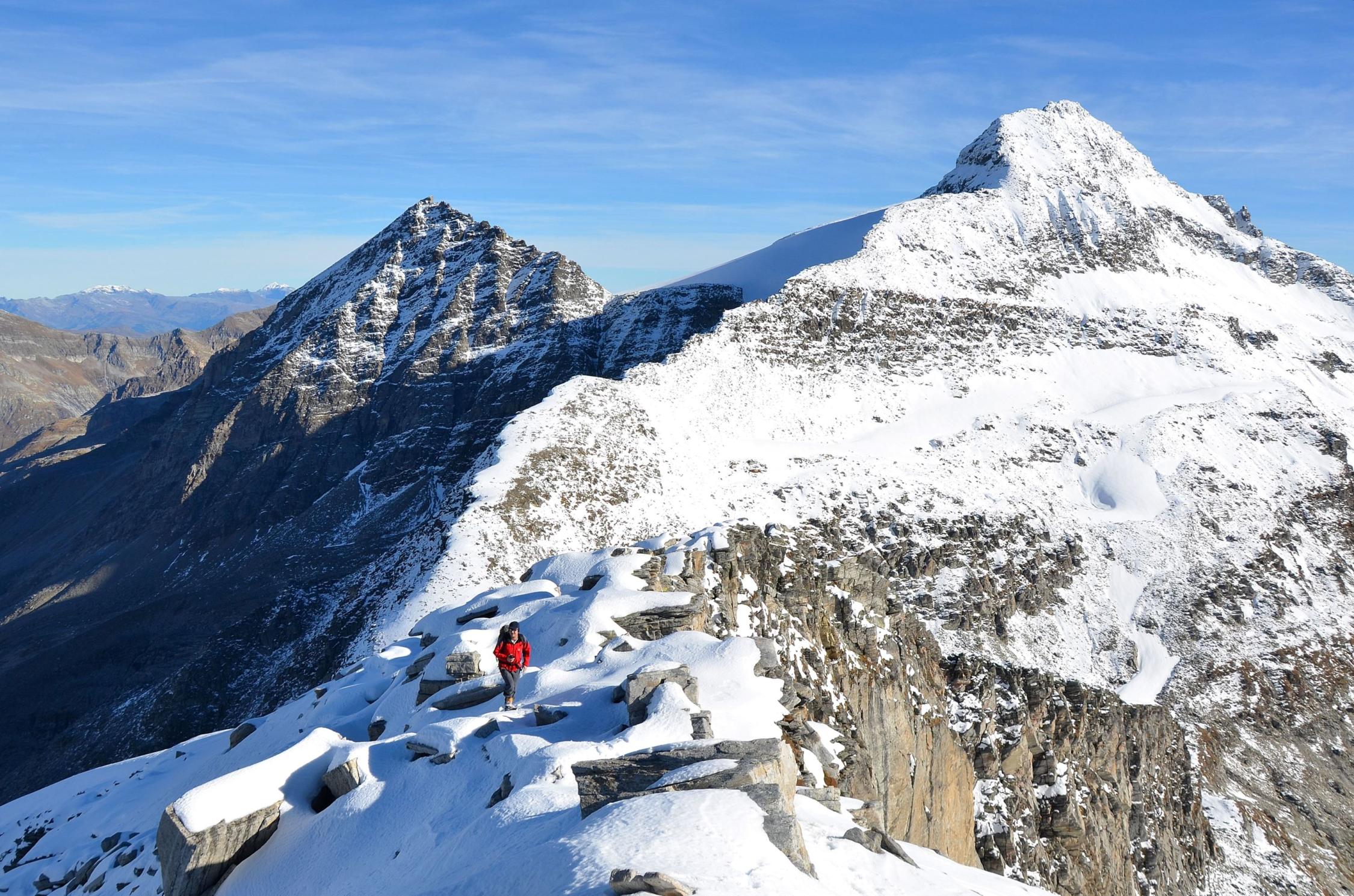Am Rheinwaldhorn waren wir alleine unterwegs. Erst im Schlussaufstieg begegneten wir noch vier Berggänger, die von der Tessiner Seite her zur Adulalücke aufstiegen. Ansonsten hatten wir den ab 2800 m tief verschneiten Berg für uns an diesem traumhaft schönen Herbsttag.