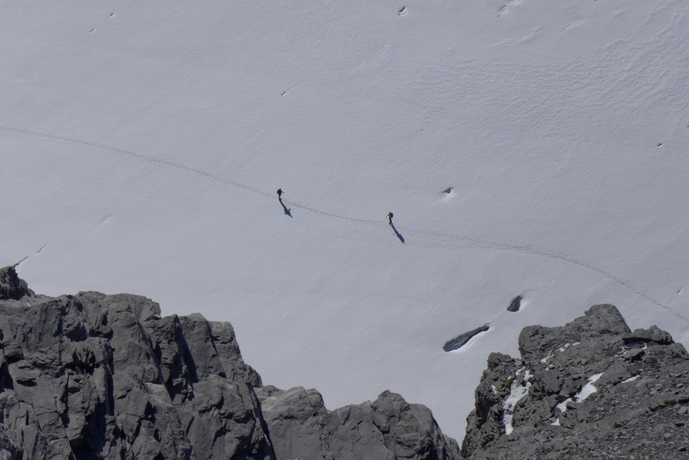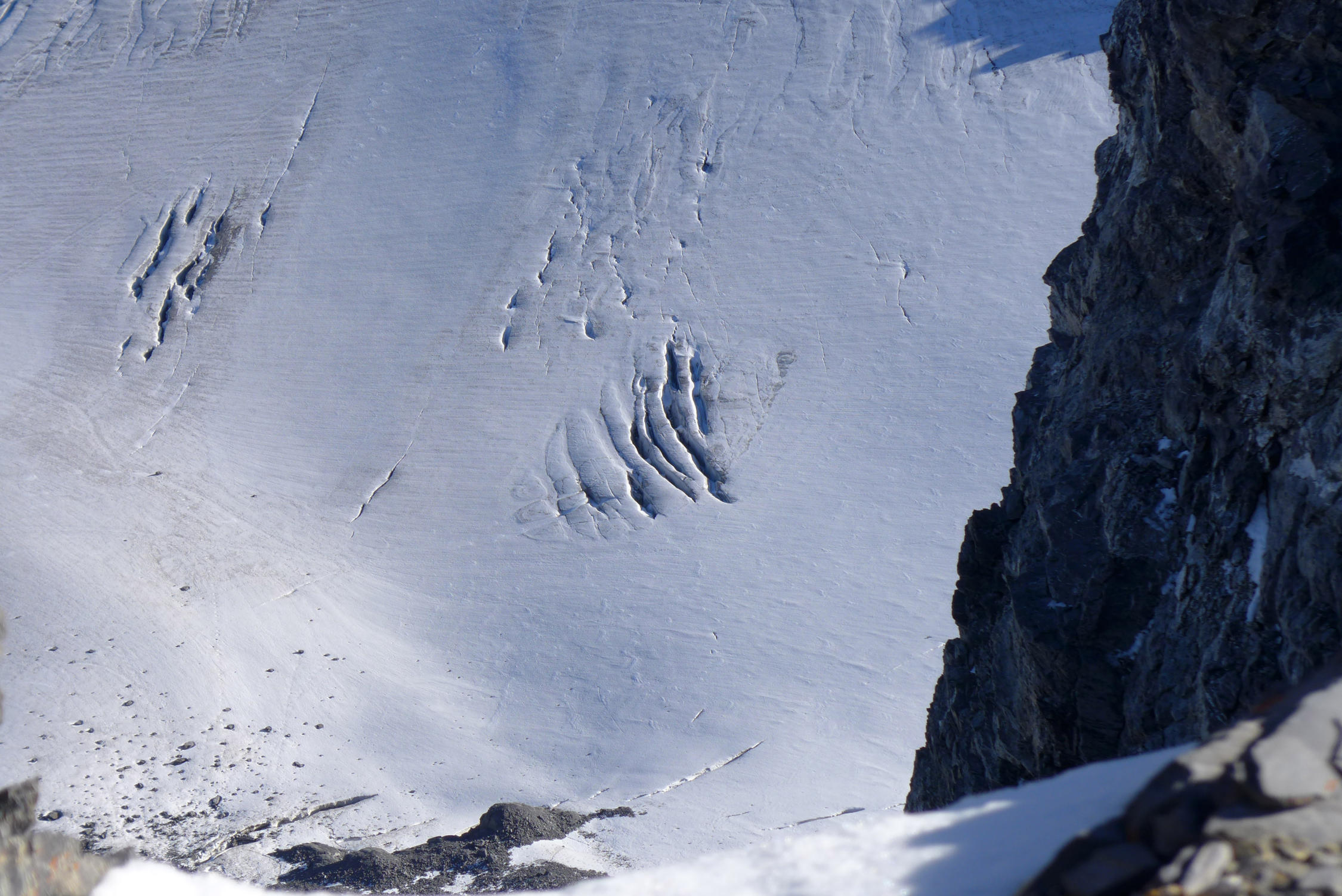 Gletscher: wenige cm Neuschnee auf altem Firn. Spalten nur teilweise sichtbar, Achtung Firnbrücken; nur oberflächlich tragend durchgefrohren. Kraxelei am Spannort genüsslich schneefrei.
