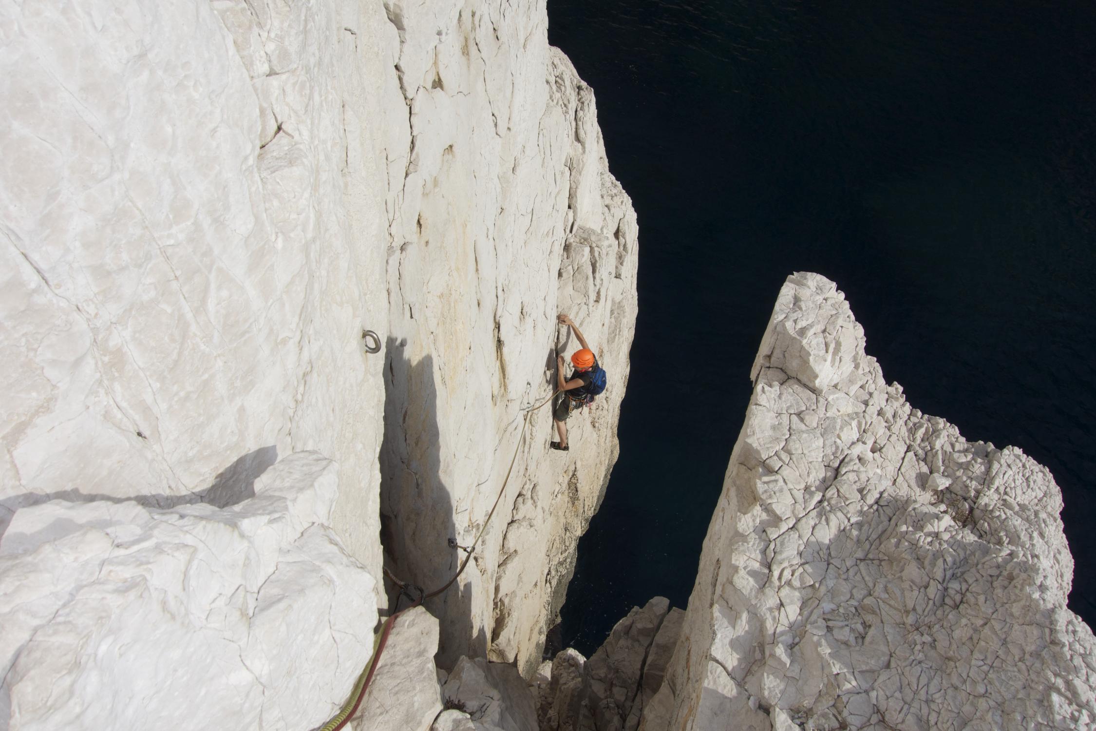Spektakuläre Traversen über dem Meer, Nach- und Vorsteiger sollten sicher im unteren sechsten Grad unterwegs sein