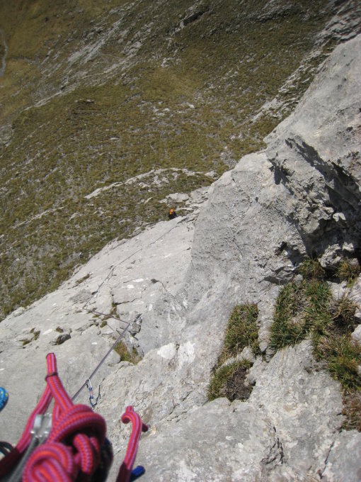 nach Wetterumschwung neu zu beurteilen, wenn die Grasflanken nass sind, dann ist der Zustieg sehr heikel