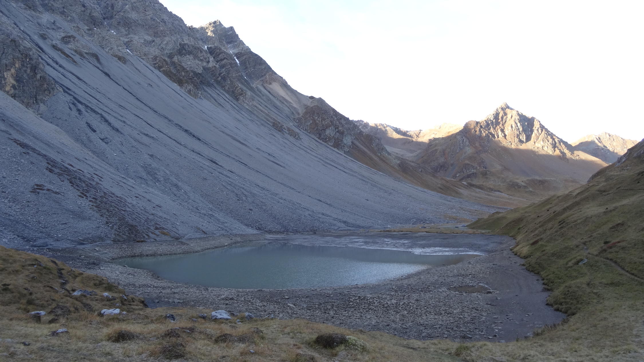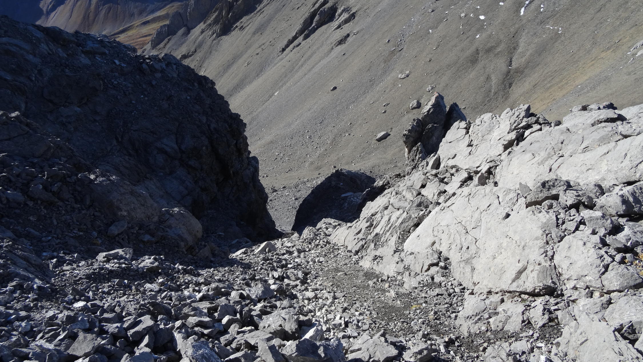 Alles schneefrei. Es hat auf dem Westgrat zwar steinmännli aber nicht immer ist der beste Weg klar. Abstieg über ein sehr steiles Geröllcouloir richtung "Ramozhütte".