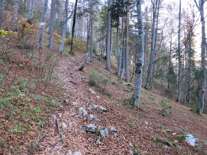 Start um 7:50 bei schönem Herbstwetter mit teils hohen Schleierwolken. Später sonniger und wärmer, aber am Gipfel starker Südwind. Wege durchwegs trocken; ausser im Bereich der Latschengürtel war die Erde noch etwas feucht und klebrig. Ganze Route ist gut markiert, so dass man selten suchen muss.