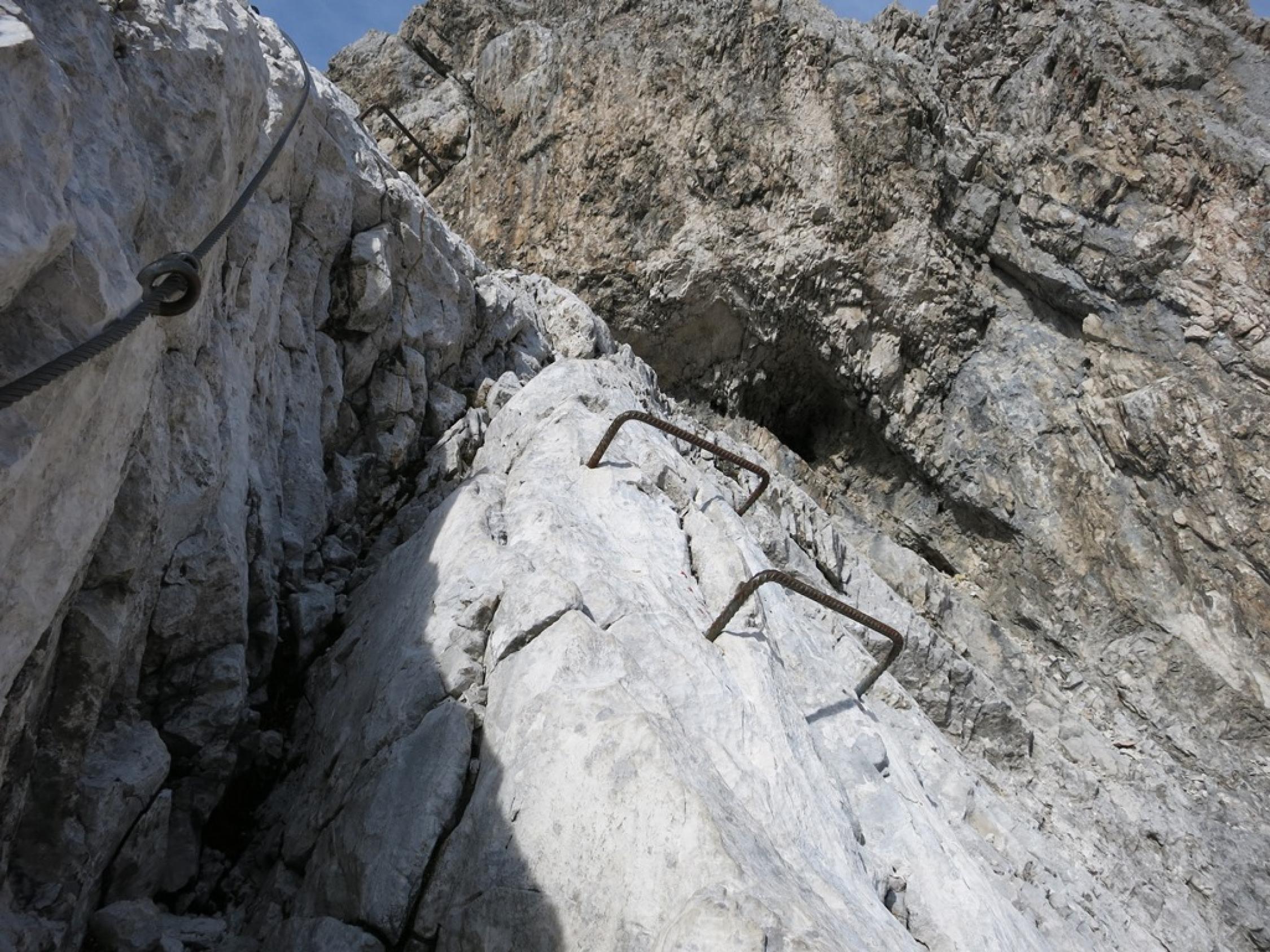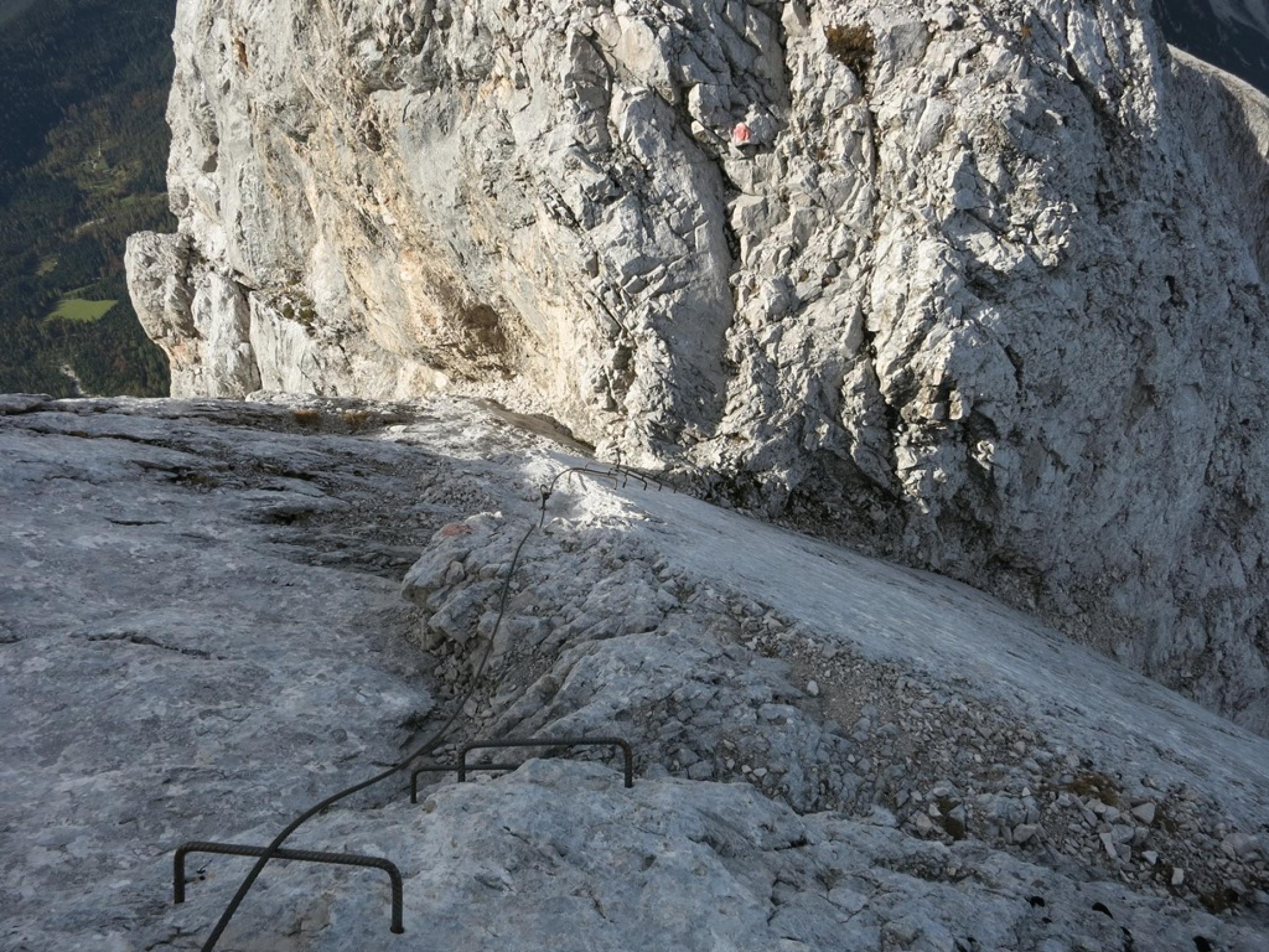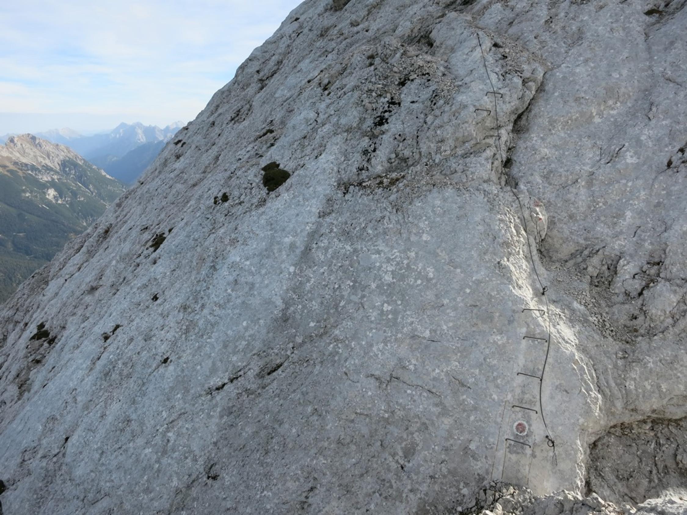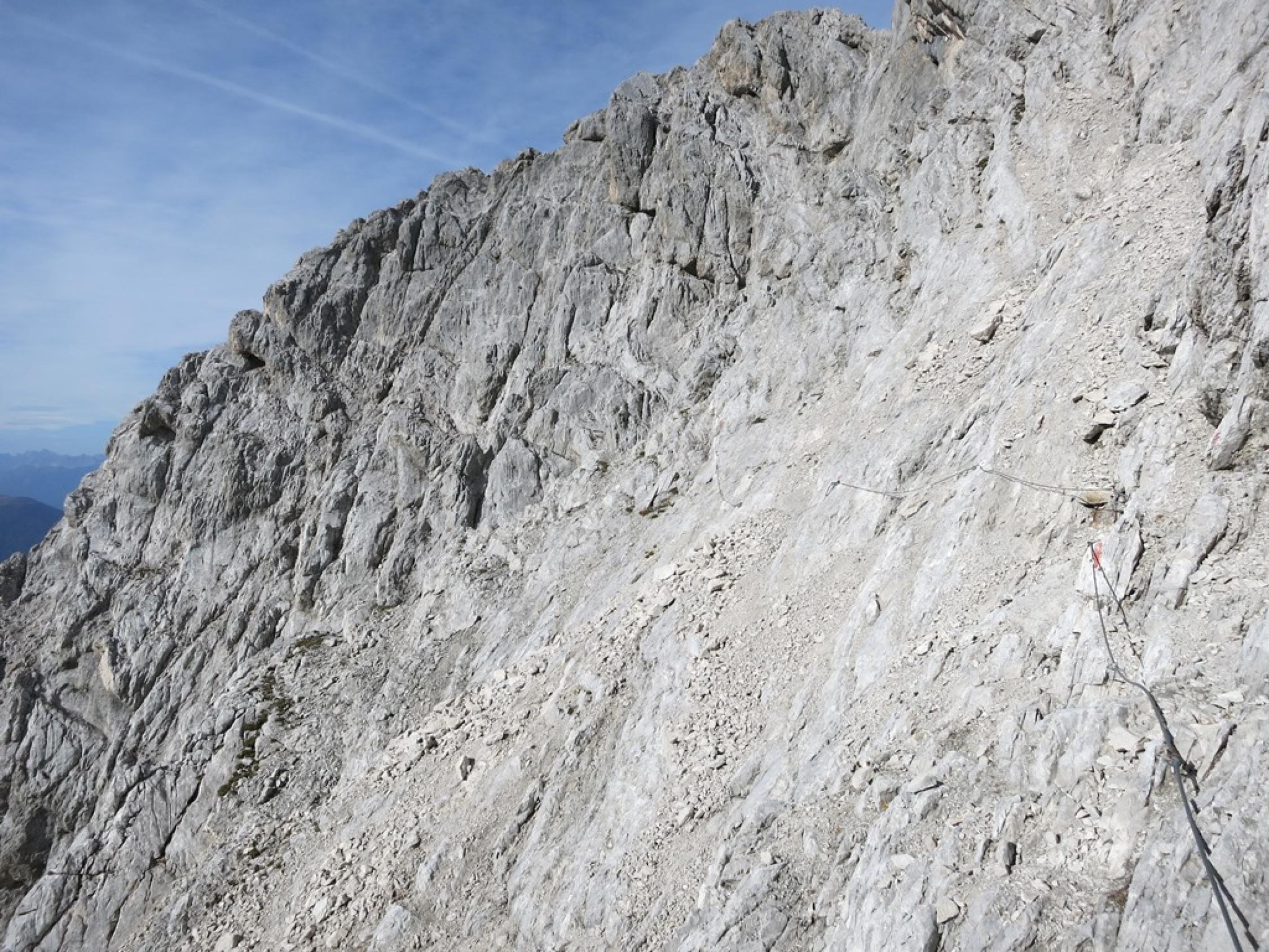 Ob man die Tour von West nach Ost, oder wie ich umgekehrt macht, ist Geschmacksache. Meine Idee war: Zuerst auf den niedrigeren Ostgipfel, dann auf den höheren Westgipfel zu steigen; und das „Zückerchen“ mit dem gesicherten Steig durch die gelbe Wand und den I-er Stellen dann im Abstieg zu geniessen.