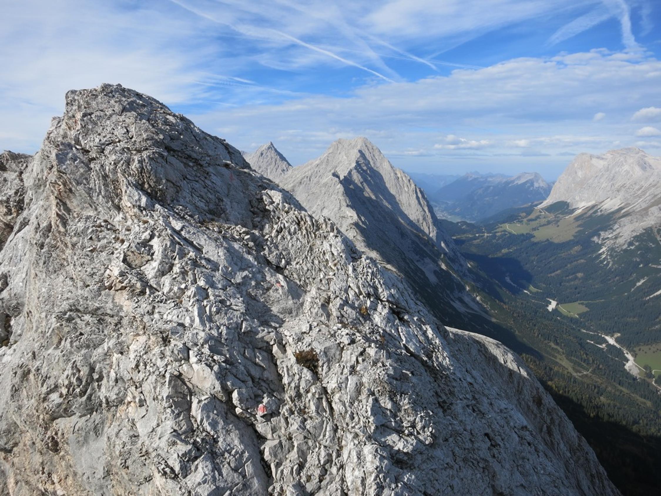 ab Buchen (bei Telfs) Buchen (1193) – Rauthhütte – Zugspitzblick – P.2092 – Hohe Munde Ostgipfel (2592) – Hohe Munde Westgipfel (2662) – Niedere Munde-Sattel – P.1614 – Strassberghaus