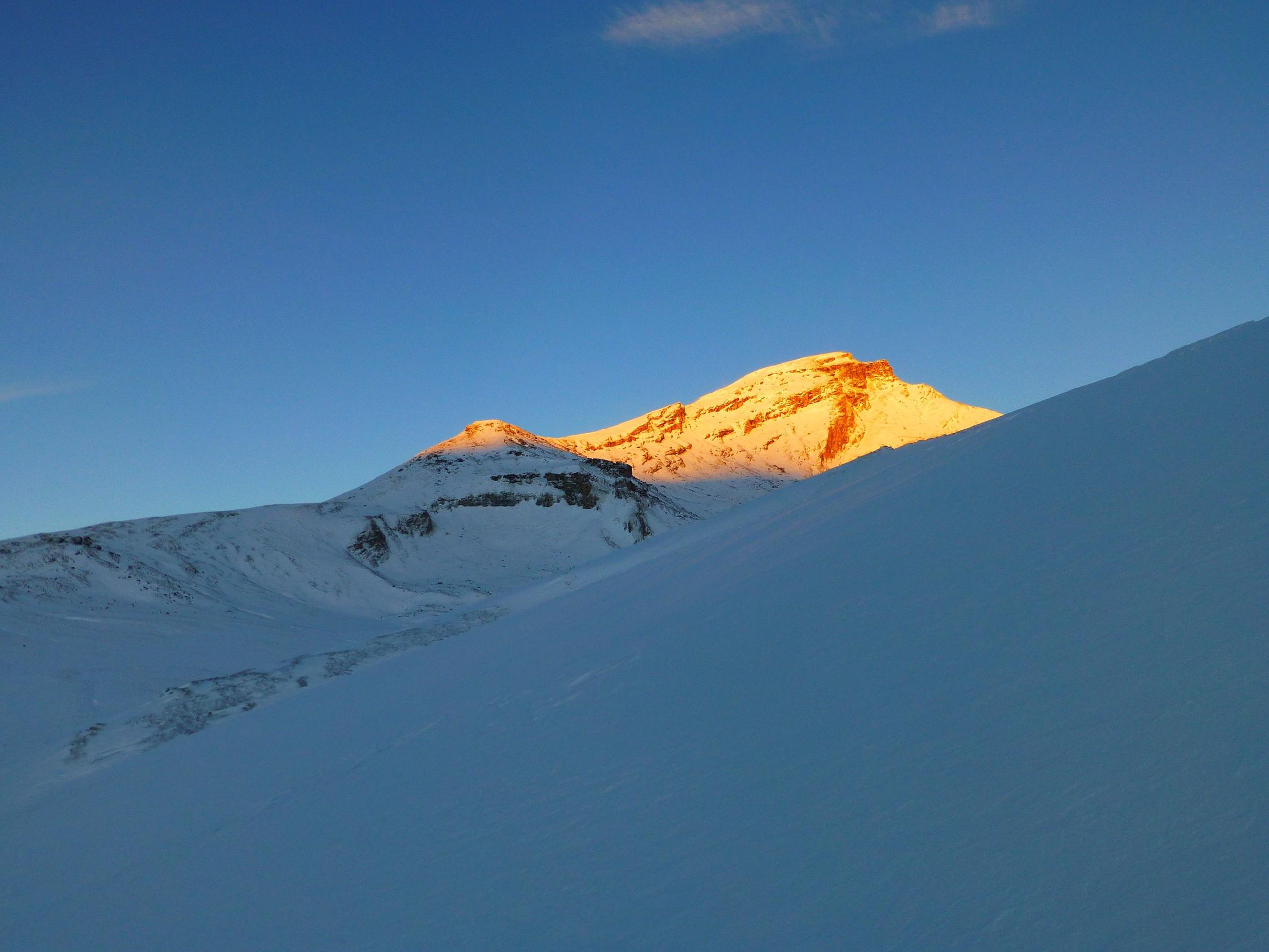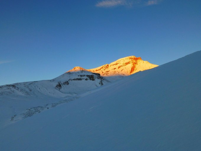 Erste Skitour des Jahres. Kann man nicht viel sagen... Herrliche Stimmung heute Morgen beim Sonnenaufgang am Piz Beverin, alles tief verschneit und friedlich, ab Dros (1871 m) aber ziemlich verblasen. In den Mulden war aber noch reichlich Pulverschnee anzutreffen und auch der Gipfelhang war recht gut eingeschneit. Ein paar Steinkontakte waren jedoch nicht zu vermeiden. Aber man ist ja nicht wählerisch am 24. Oktober und hat wie es sich gehört anfangs Saison die ältesten Ski der Kategorie III aus der Garage geholt.
