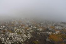 ... Zuerst ging es auf einem etwas morastigen Weg durch dichte Vegetation. Bald sah ich trotz Nebel etwas von der nahen Umgebung da es langsam Tag wurde. Nach etwa 25 Minuten erreichte ich die Lavahöhle Furna als gerade eine Schauer niederging. Ich rastete in der Höhle kurz und ass eine Banane. Bei leichtem Regen ging es dann aber bald weiter. Der Weg wurde nun stets felsiger und steiler. Dank dem bequem begehbaren Untergrund stieg ich rasch höher während die Vegetation um mich herum weniger wurde. Der Nebel verdichtete sich und Regen gab es keinen mehr. Feucht war es dennoch denn der Wind nahm auch stets zu und die Feuchte drang in Rucksack, in die Fototasche - kurz gesagt einfach überall hin. Zum Krater hin flachte der Bergweg ab und bei der Markierungsstange Nummer 44 stand ich dann auf dem Kraterrand wo mir der Wind mit voller Kraft traf. Nach einer Pause an einer windgeschützten stieg ich in Krater ab wo der Wind etwas weniger wehte. Im Blindflug lief ich durch den Krater in Richtung Piquinho. Plötzlich sah ich im Nebel die Silhouette des Lavadoms und das Gelände wurde steiler. 20m unterhalb des Gipfels durchbrach ich die Wolkenobergrenze und stieg über eine windgeschützte Rinne zum Gipfel. Oberhalb der Rinne traf mich dann der Sturmwind so stark dass ich kaum stehen konnte! Ich deponierte meine Wanderstöcke und trotzte dem Wind auf den letzten Metern zum Gipfel. Lange blieb ich dort nicht auch wenn ich eine Stelle zum Rasten fand die etwas windstill war. Trotz den Bedingungen oder vielleicht gerade deshalb hat die Tour Spass gemacht. Der Abstieg verlief sehr zügig wegen dem gut begehbaren Lavagestein. Im untersten Teil vezog sich sogar der Nebel so dass ich bis zur Küste über die grün bewachsene Vulkanlandschaft sehen konnte ...