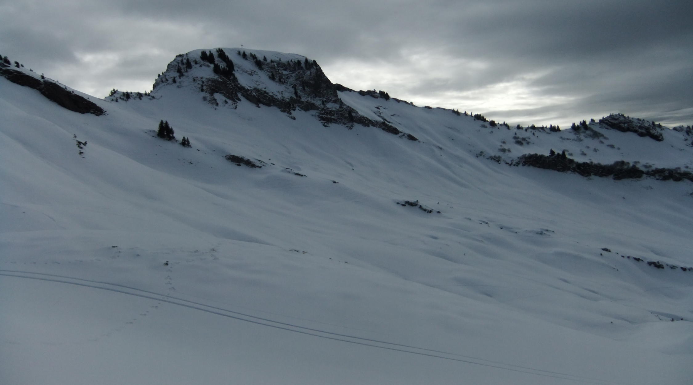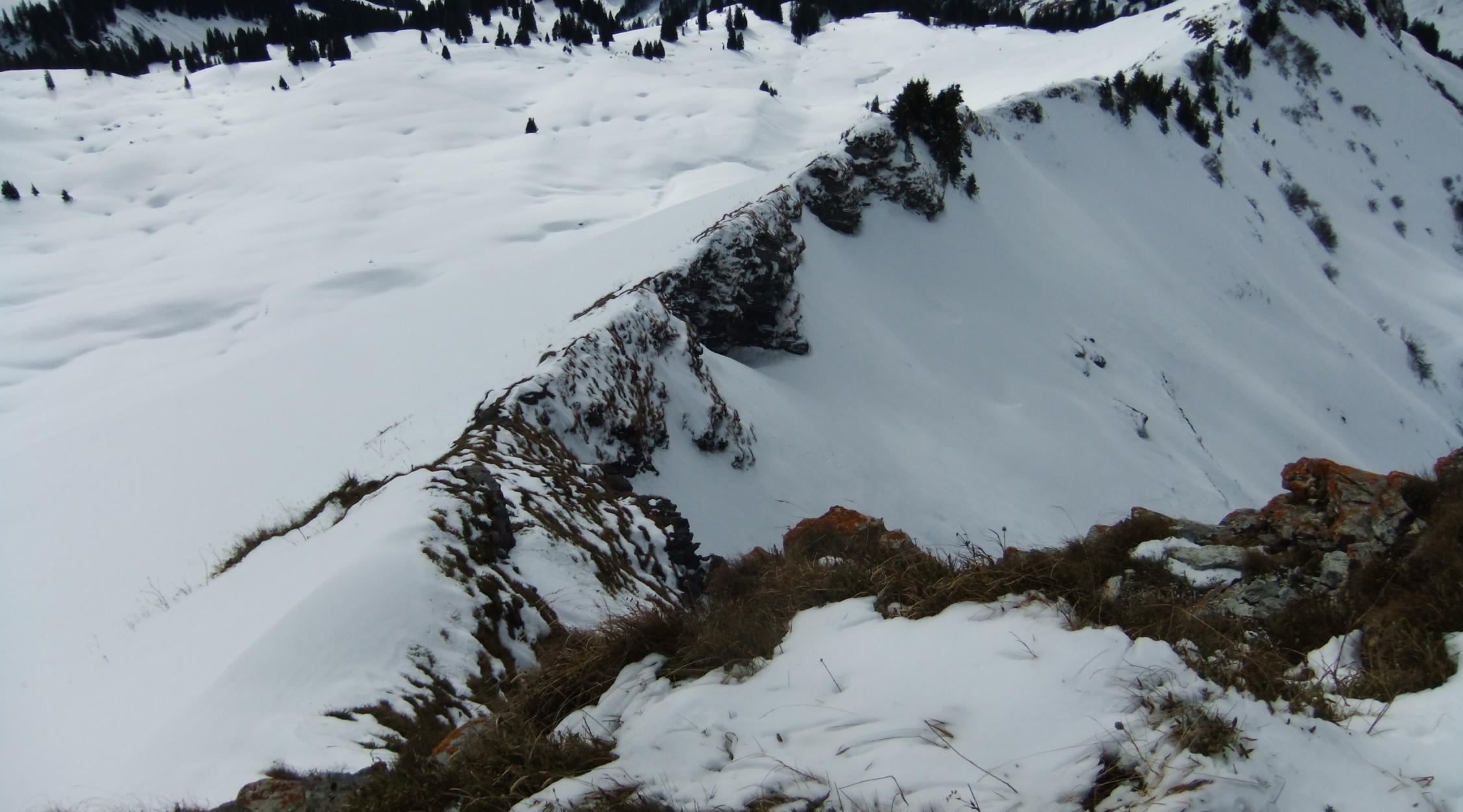 Der Südhang oberhalb der Waldpassage nach Hinterer Garnitzenalpe war entladen. Passierte wohl gestern oder vorgestern.
