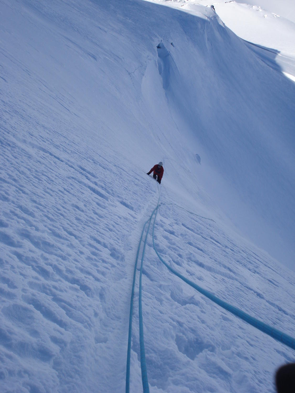 Viel leicht gesetzter Pulverschnee auf hartem Firn. Kein Blankeis.