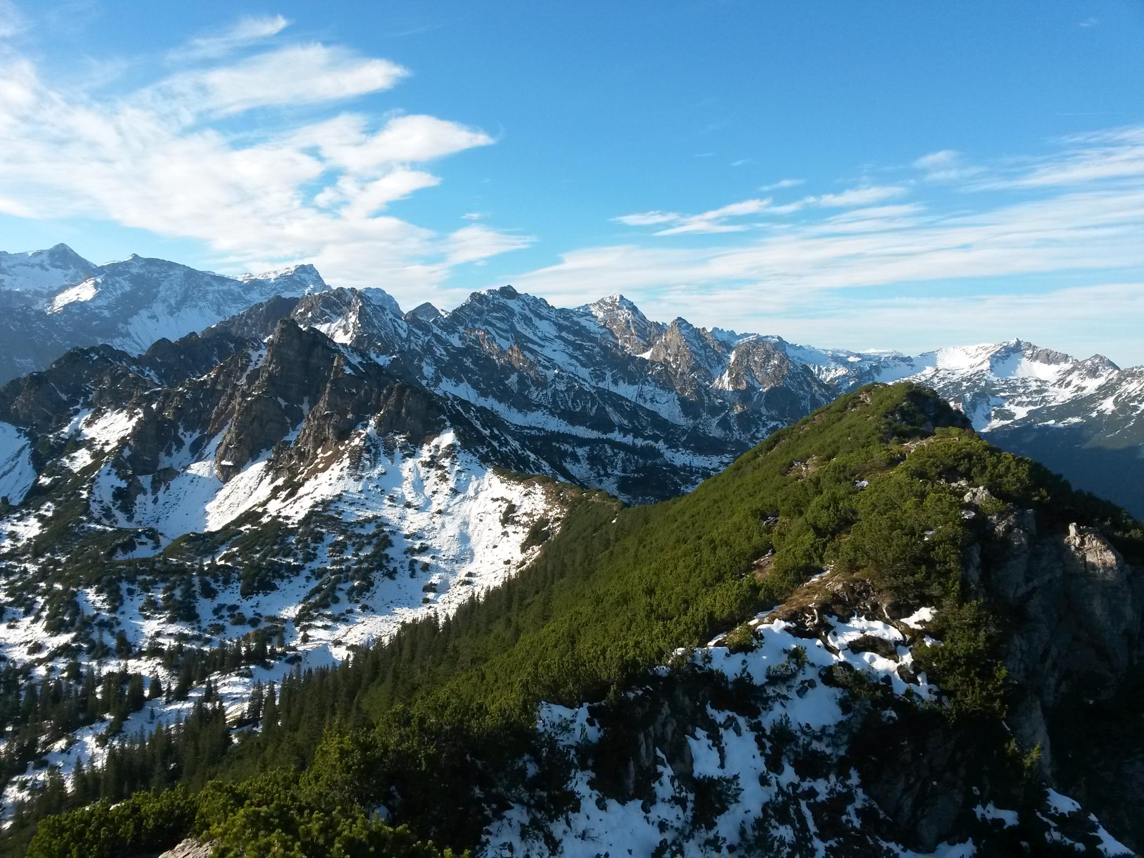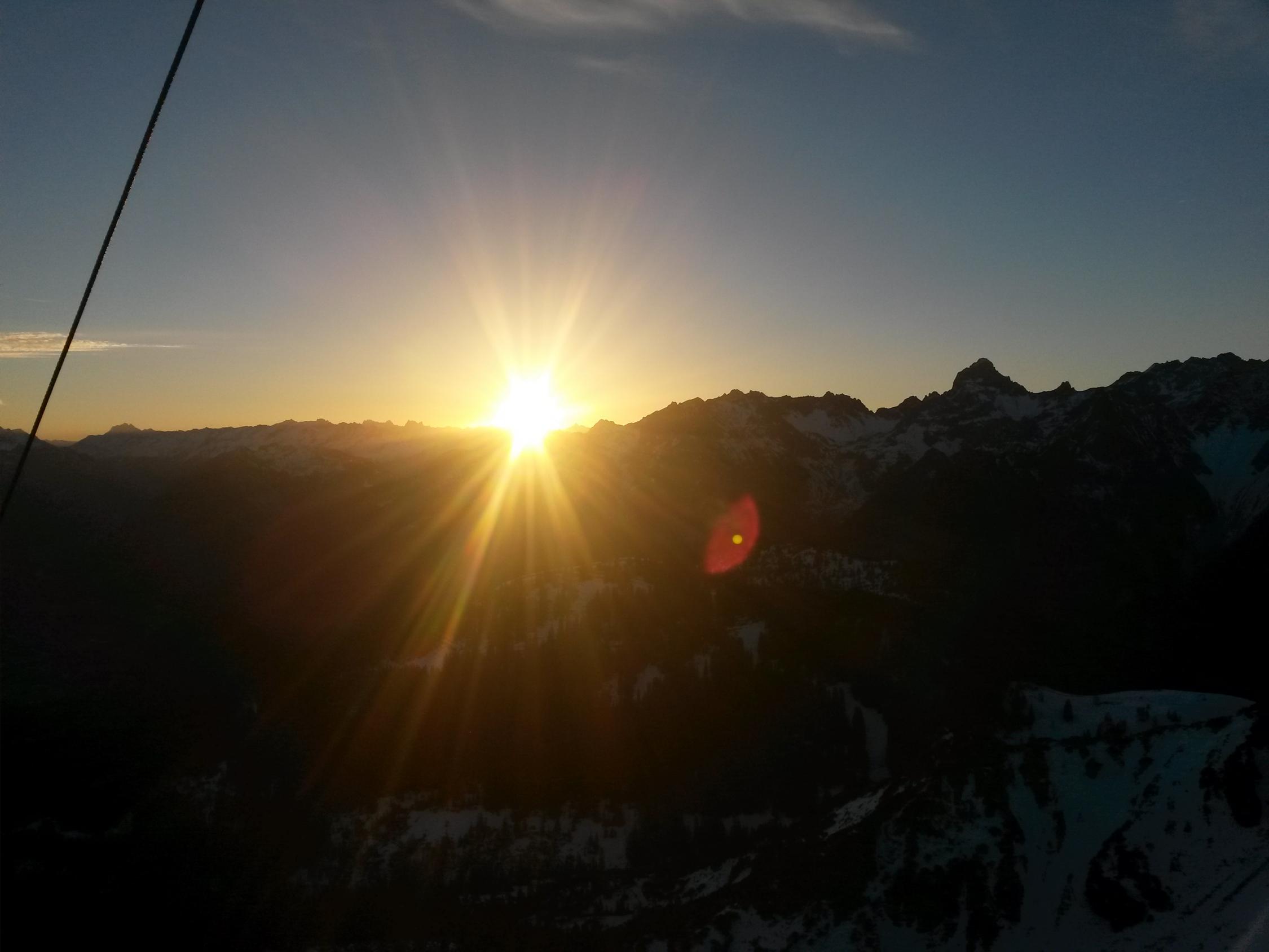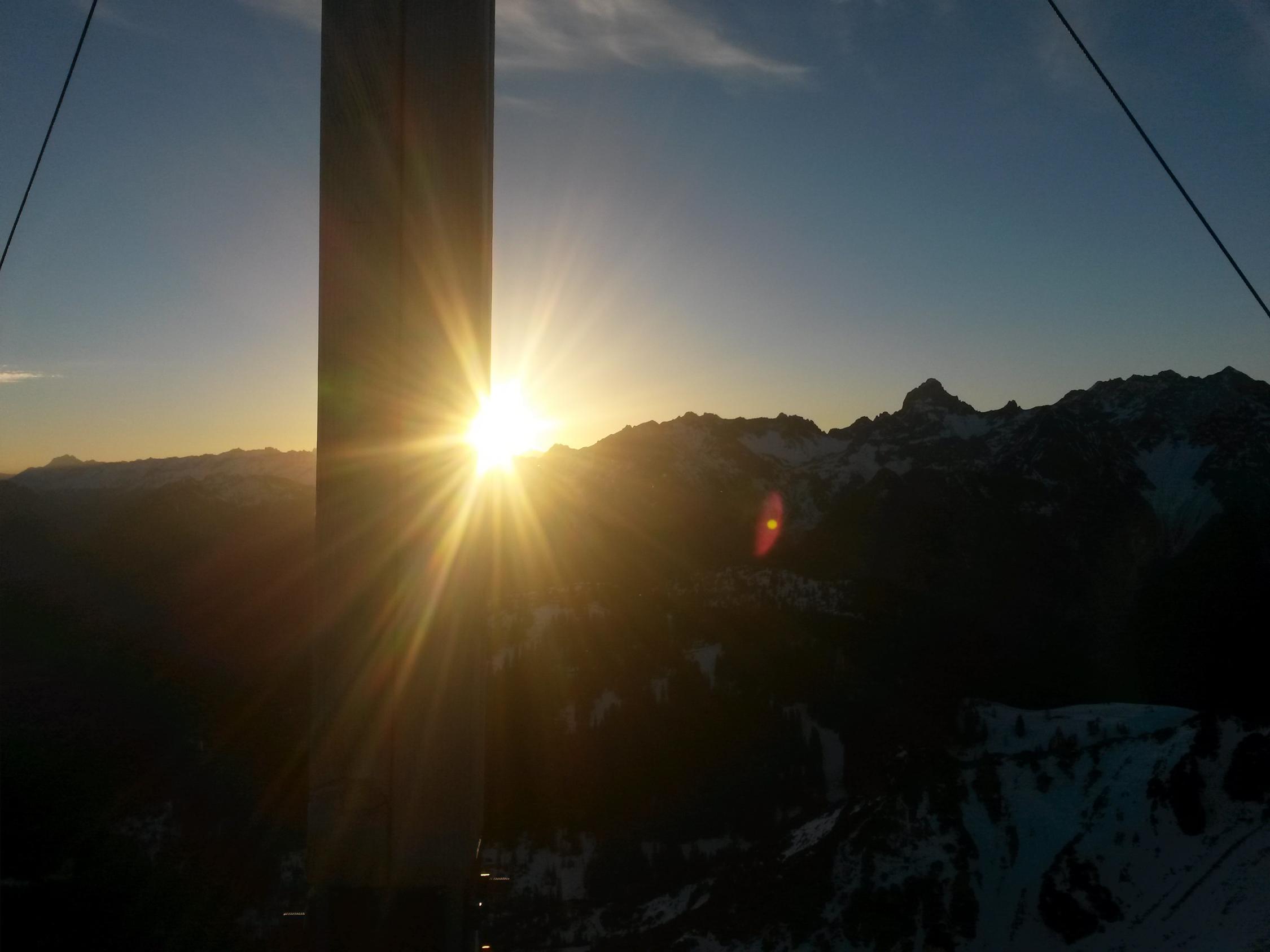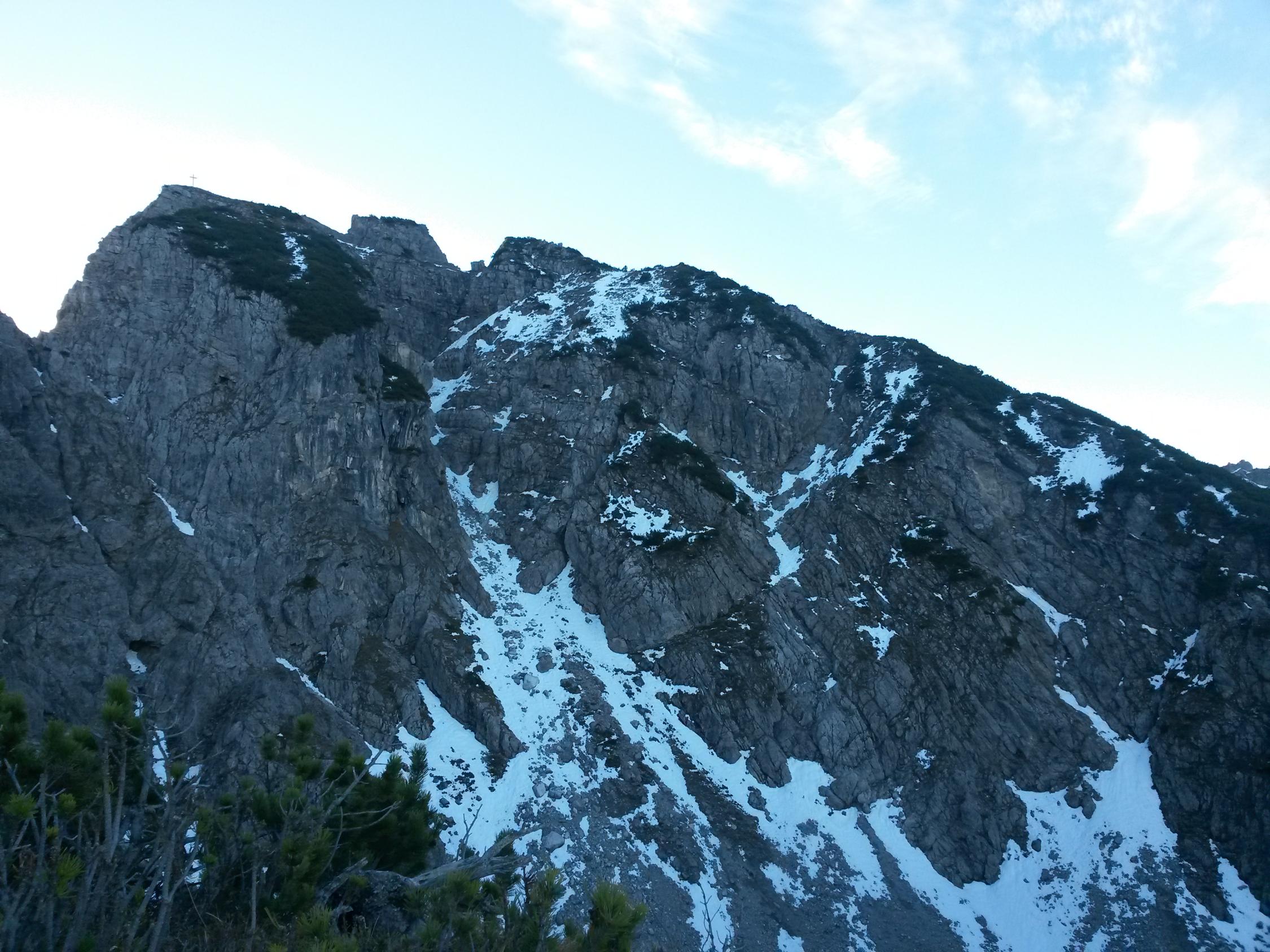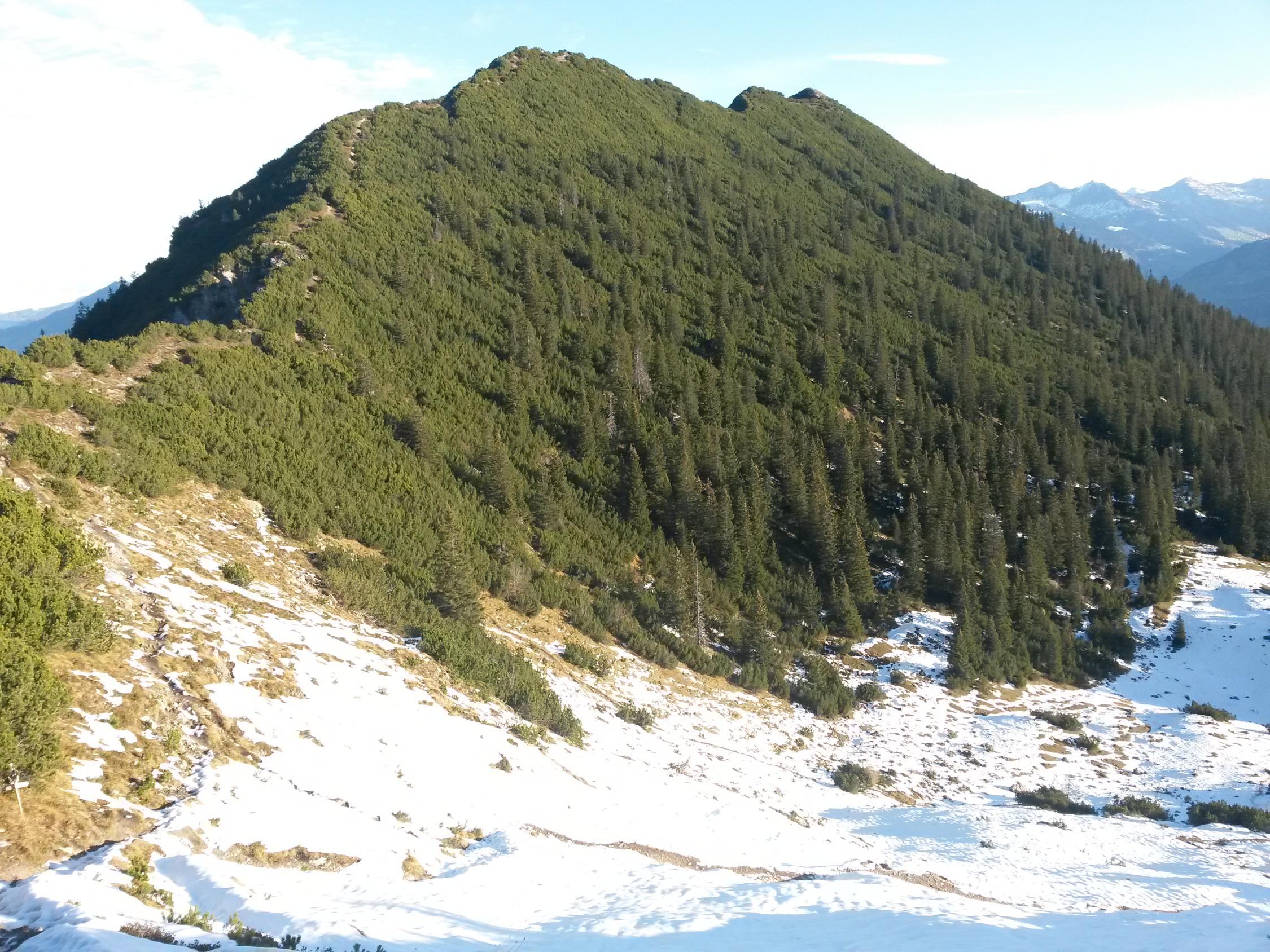 Im Schatten Schnee, gefroren und Spur teilweise eisig, aber ohne Steigeisen. An der Sonne tocken.