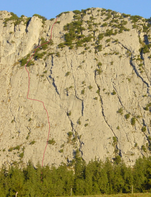 Einstieg um 9Uhr in die Flugroute. Fels bereits schön warm, noch kein Betrieb an der Wand, ausser einer weiteren Seilschaft. Sind so bei T-Shirt Wetter durch die recht anhaltend schwierige Route zum Gipfel hoch. Die Route ist immer wieder toll zum klettern. Knackige Plattenstufen, steile Wasserrillen und natürlich der lange Quergang im oberen Wandteil lassen das Kletterherz höher schlagen. Mit gut+ bestens gesichert, kein weiteres Material nötig. Trotz dem späteren grossen Andrang problemloses Klettern möglich, da sehr viel Routen zur Auswahl stehen, die allermeisten bestens saniert sind. So noch einmal einen tollen Herbsttag genossen.