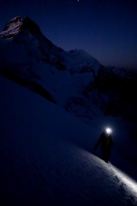 Vielen dank für die Seilschaft die (am Sonntag?) bereits bis ca 3150m vorgespurt hatte.
