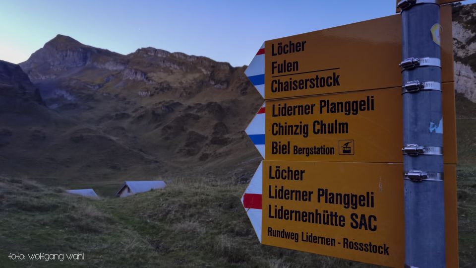 Vom kostenpflichtigen Parkplatz (5.-- / Tag) bei der Seilbahnstation Chäppeliberg auf 1’178m, folgt man dem Wanderweg ostwärts richtung nach Muotathal bis zum Wegweiser auf 1’475m, wo man rechts richtung Lidernen SAC auf einen Bergweg abbiegt. Der Bergweg ist sehr abwechslungsreich mit vielen Treppen, mal rauf, mal runter bis zum Wegweiser auf 1’685m, welcher den Bergpfad zum Chaiserstock weist. Zu Beginn noch weiss-rot-weiss, ab der Verzweigung auf 2’075m dann weiss-blau-weiss markiert. Ab Chaisertor sind an ausgesetzten Stellen Stahlseile und z.T, Steigbügel zur Sicherung montiert. Den Gipfel vom Chaiserstock 2’515m erreicht man dann über einen gut erkennbaren und markierten Bergpfad. Vom Gipfel kann man den weiteren Wegverlauf richtung Rossstocklücke/Fulen gut erkennen, welchem man nach dem Abstieg über das Chaisertor folgt. Der Bergpfad richtung Rossstocklücke ist immer gut erkennbar und ausreichend weiss-rot-weiss markiert. Ab Rossstocklücke führt dann wieder ein weiss-blau-weiss markierter Bergpfad zum Fulen 2’491m hoch. Es gäbe eine Abkürzung vom Lidener Plänggeli durch die Nordflanke, welche dann auf den markierten Bergpfad trifft, der von der Rossstocklücke auf den Fulen führt Diese ist jedoch weder markiert, noch in den Karten eingezeichnet, dazu ist der Einstieg nicht erkennbar. Will man umgekehrt vom Fulen auf den Chaiserstock über die Abkürzung durch die Nordflanke absteigen, ist der Pfad nach der Verzweigung am Normalweg gut erkennbar und mit Steinmännchen markiert. Zurück über die Rossstocklücke führt ein weiss-rot-weiss markierter Bergpfad auf den Rossstock 2’461m. Im Abstieg vom Rossstock geht man beim Wegweiser links richtung Liderenhütte SAC und folgt dem weiss-rot-weissen Bergpfad bis Mälchbödeli auf 1’900m. Dort verlässt man den markierten Bergpfad links richtung süd-west und steigt weglos den Grashang hinunter zum Spilauer See auf 1’837m. Bei der Umrundung des Sees finden sich mehrere gute Plätze, um sich beim Bad im frischen Wasser etwas abzukühlen. Der Weg vom Spilauer See über die Liderenhütte SAC, hinunter nach Chäppeliberg, zurück zum Parkplatz ist gut weiss-rot-weiss markiert. Alle Wege sind trocken und gut gehbar. 22.8 Km, Gesamtanstieg 1’983 Höhenmeter, Gehzeit ohne Pausen 8.5 Std.