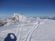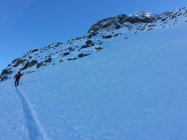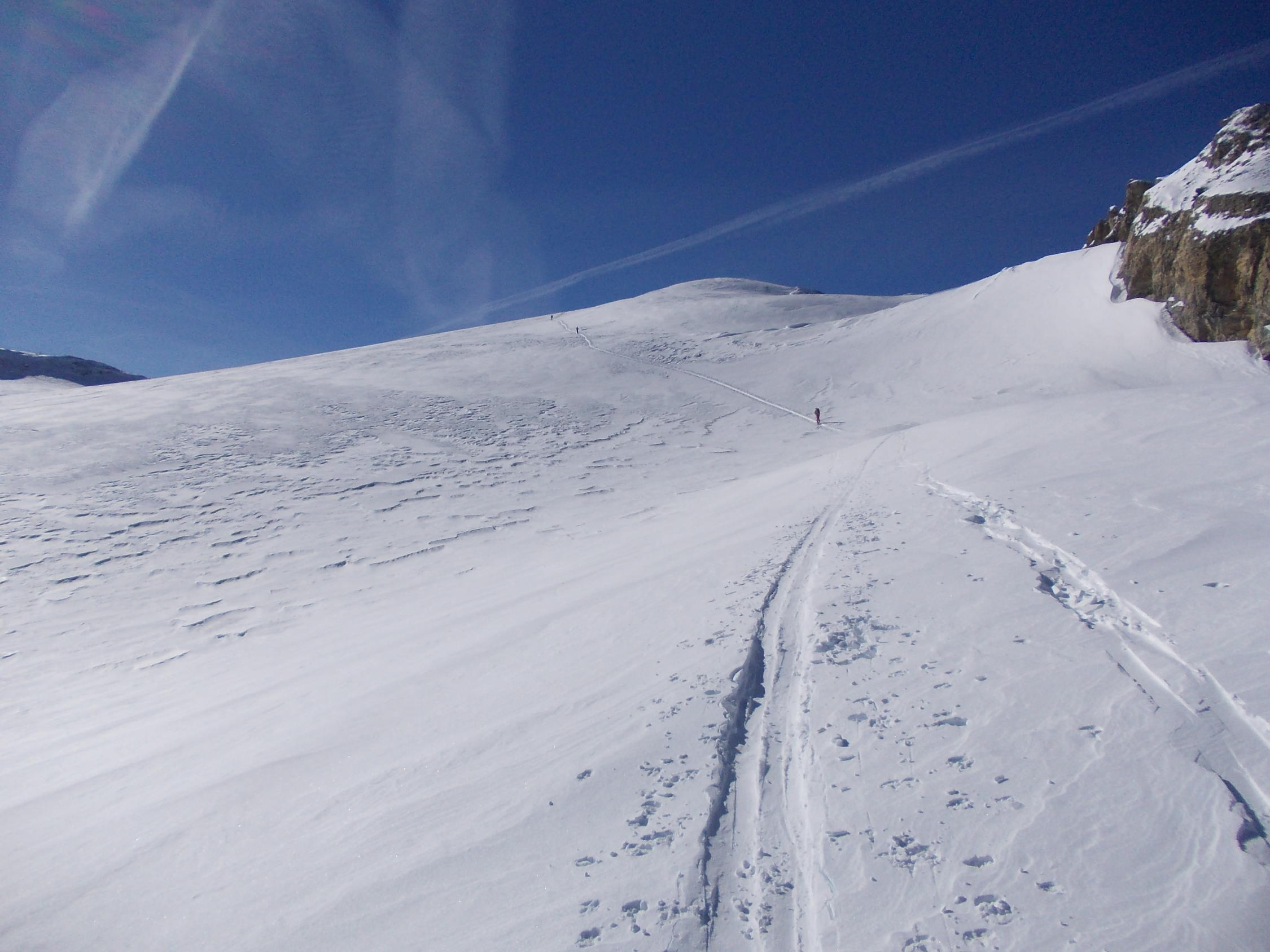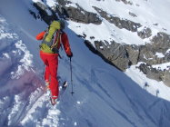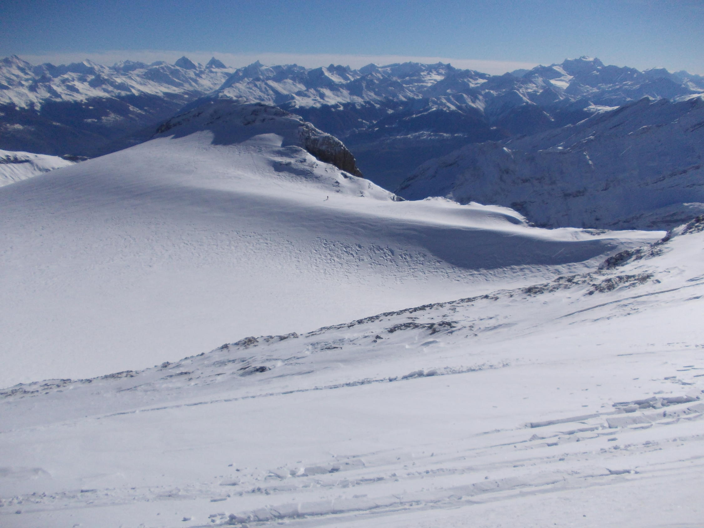 Aufstieg: Sehr gute Verhältnisse angetroffen. Im Nordcouloir Richtung Les Diablerets wunderbarer Pulverschnee angetroffen. ( siehe Foto 30 - 40cm ) Hier sehr wenige Schneeverwehungen und nur stellenweise ein "Deckel."