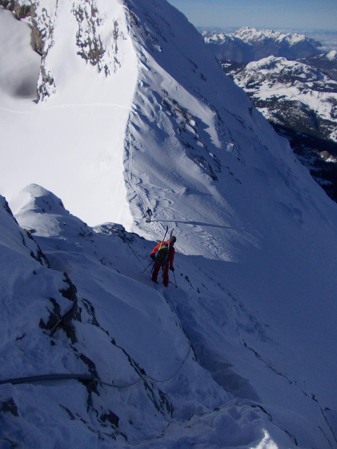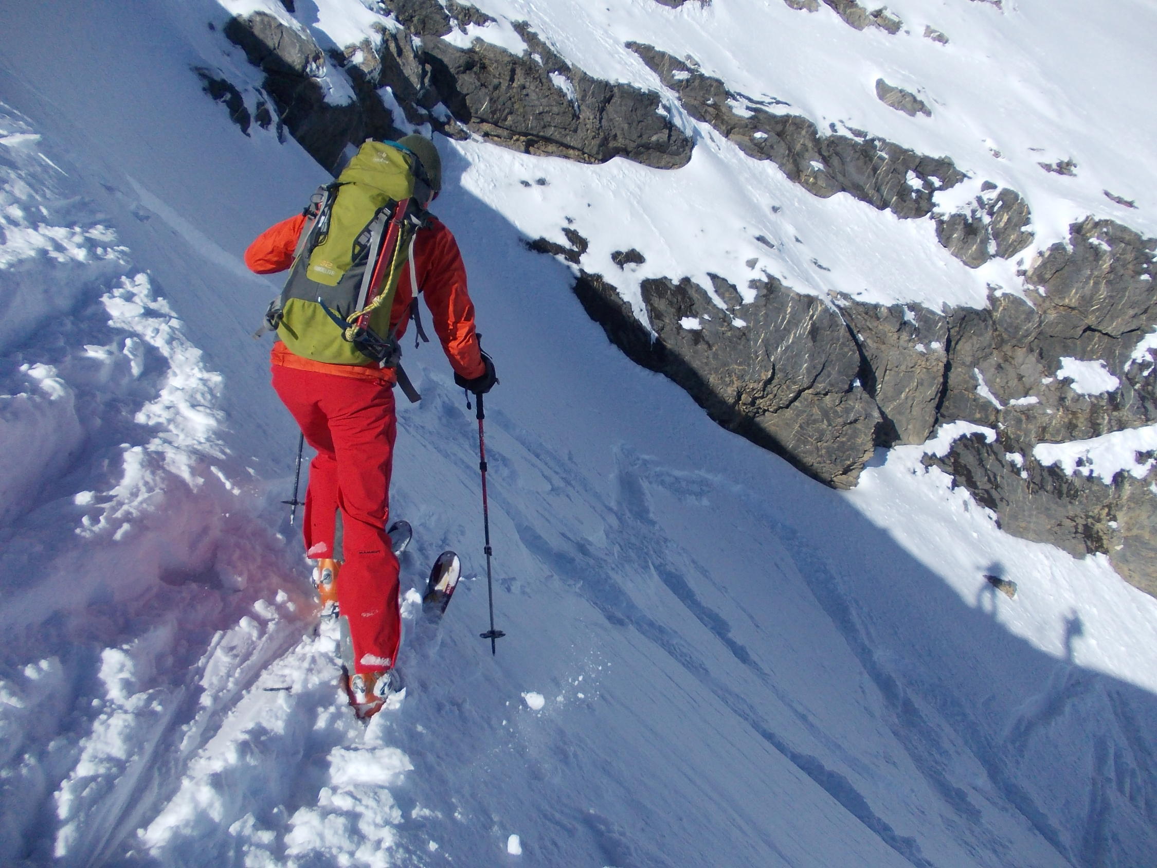 Der Entscheid in die Nordflanke abzufahren bedachte einiger kühler Ueberlegungen. Es waren von der Schneedecke her anspruchsvolle Verhältnisse.