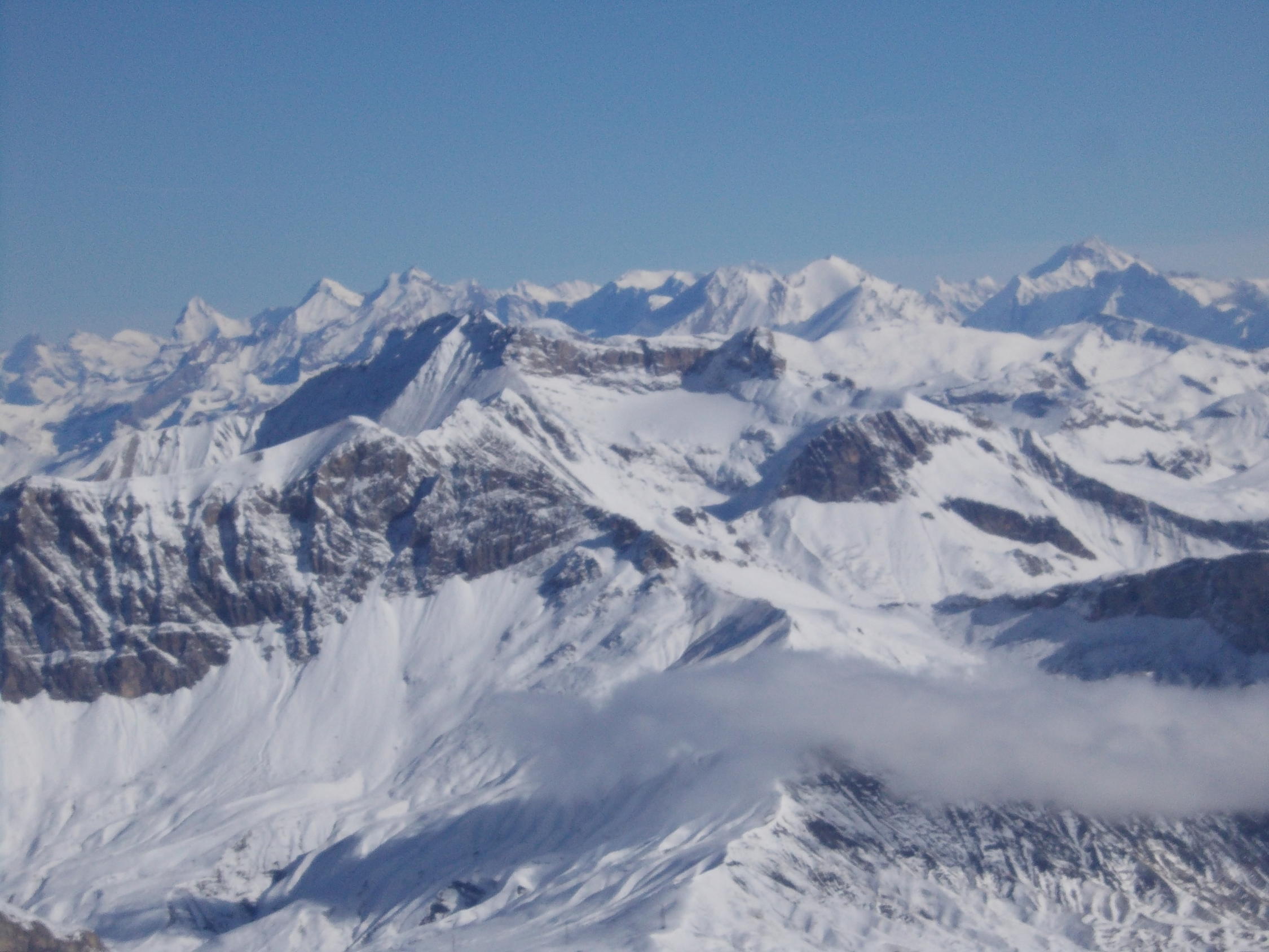 Das Panorama ist gewaltig. Der Jura, Genfersee, das Mont-Blanc Massiv, die Walliser- und Berner Riesen sind im Blickfeld. An die 60 4000er dürfen wir bestaunen.