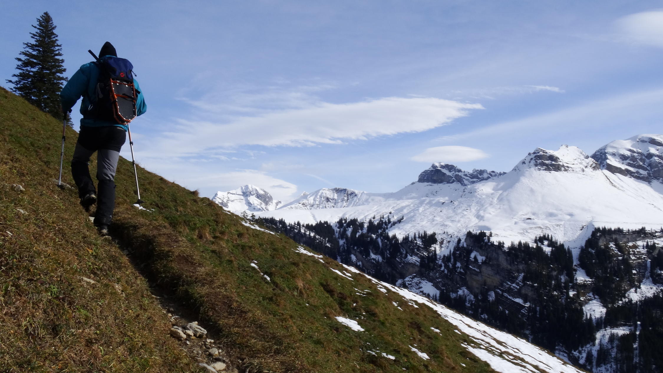 Mit zunehmenden Schneefällen am Gipfelgrat eher heikel. Dann wäre ein Pickel empfehlenswert.