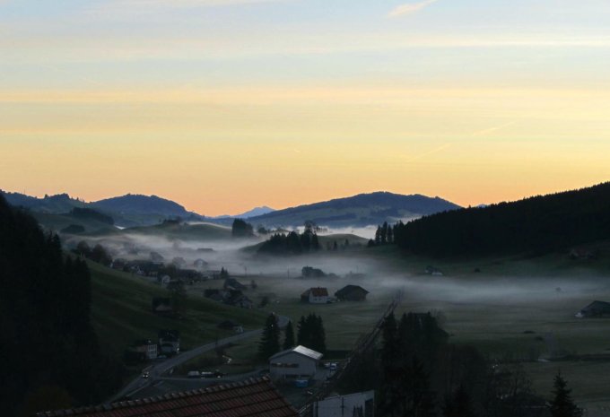 Start bei 2 Grad plus über dem Nebel. Schönes Herbstwetter, windstill und mit zunehmender Höhe wärmer.
