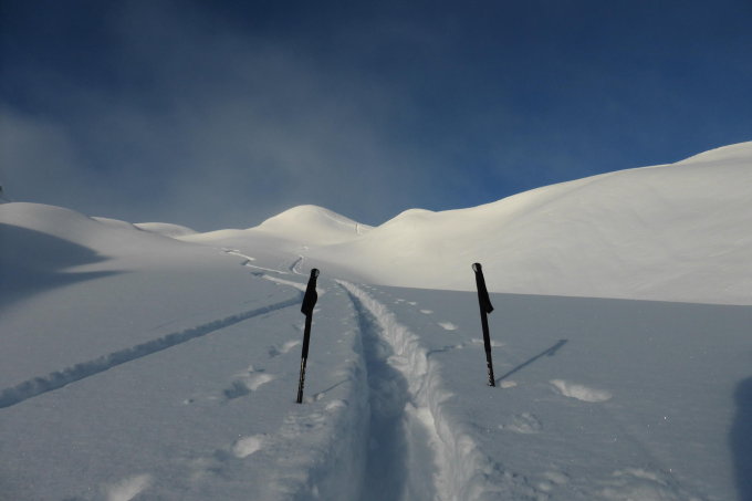 Top ... Um 7 Uhr noch einige Schneeflocken. Pulver bis ins Tal
