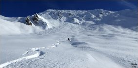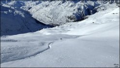 Unsere Abfahrt durch das Chälen-Couloir anfänglich noch "normaler Pow", wenige Abfahrtsmeter später dann bis Alp Rossboden traumhafter Pulver - wär hätte das gedacht. Wir durften die ersten Spuren legen - das ist doch Lebensqualität pur :-)