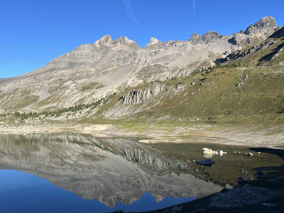 Eine Überraschung waren für mich heute die Scharen von Trailrunnern bzw. -gängern beim Abstieg. Es fand nämlich die Tour de Dents du Midi statt, bei der Hunderte von Teilnehmern rund um das Dents du Midi Massiv laufen. Sie haben in der Tat einen herrlichen Tag erwischt!