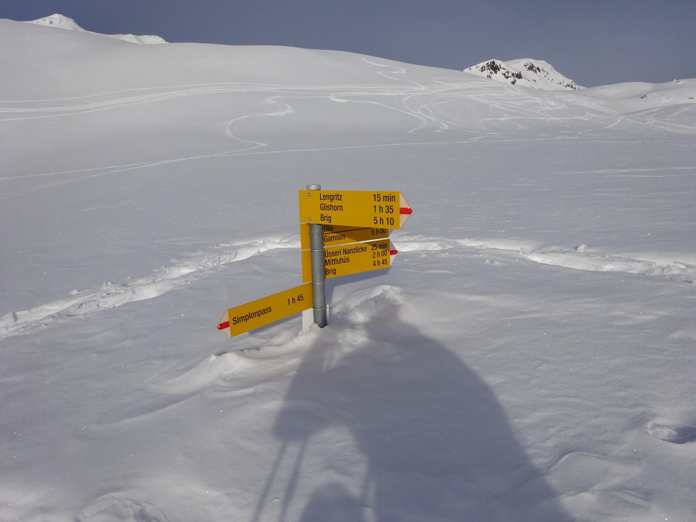 Schnee Top Passhöhe liegt ca 1m Schnee Gipfelbereich knapp 2 Meter