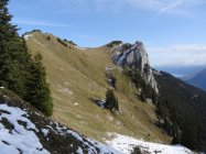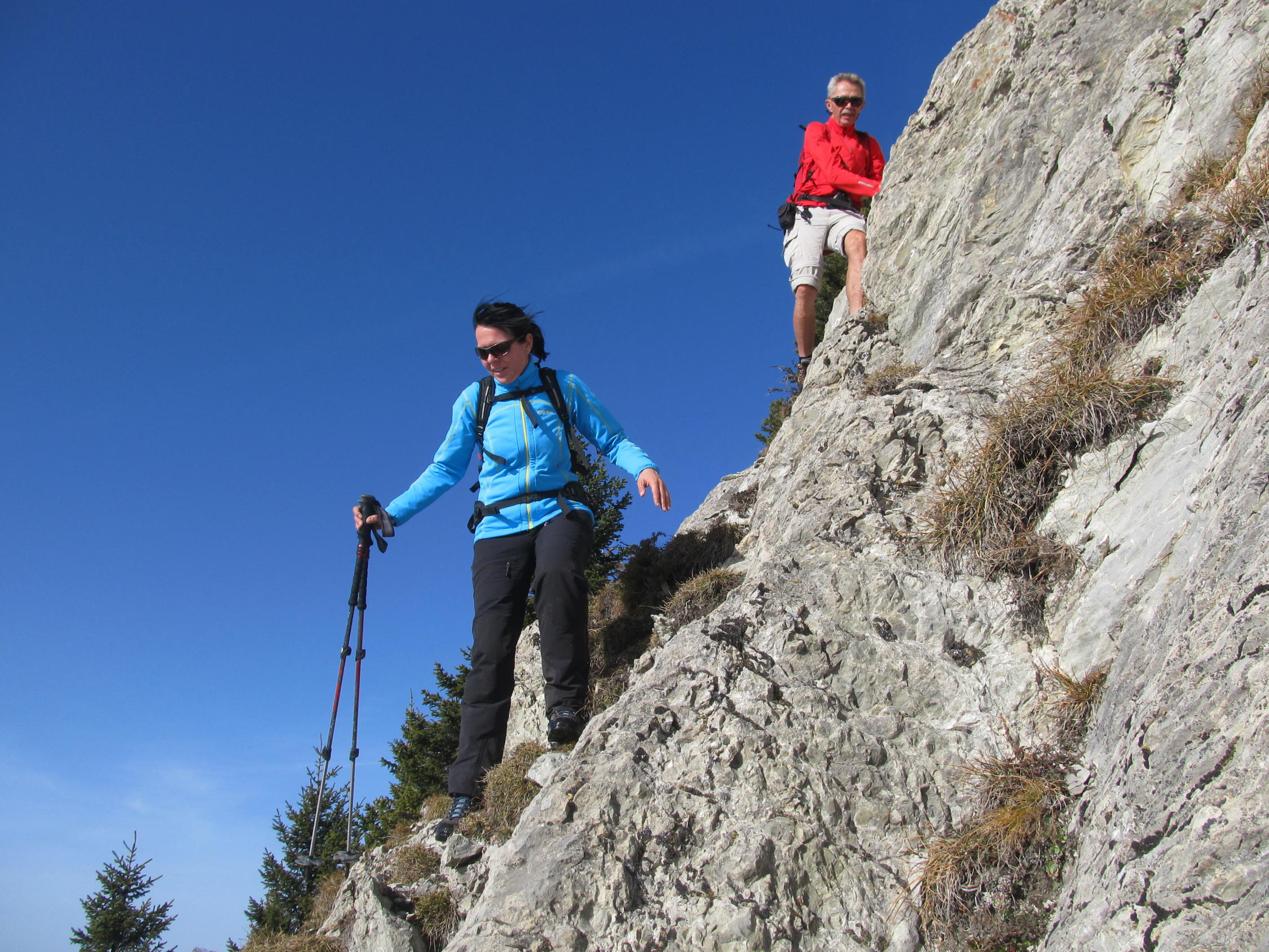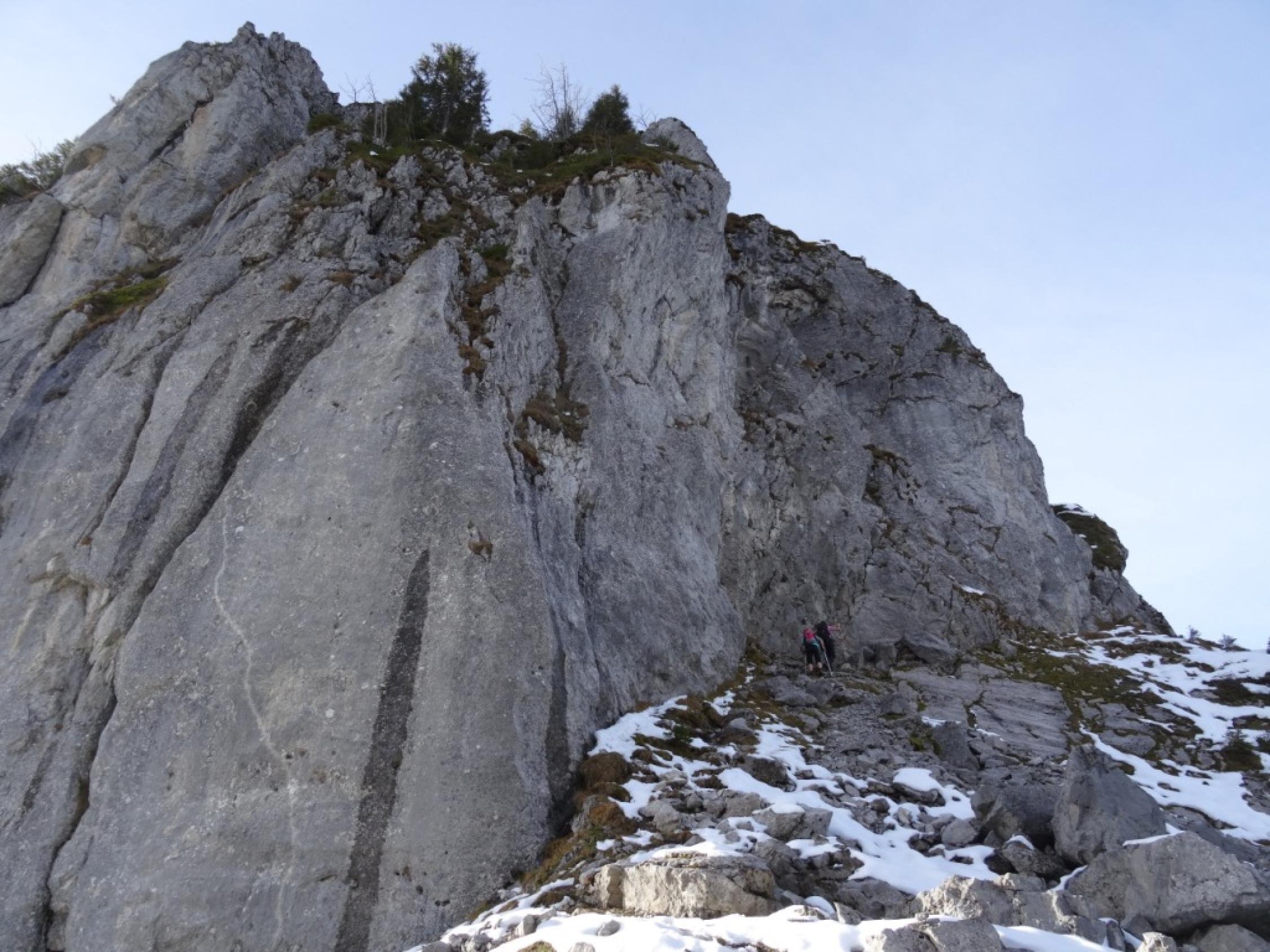 In den Südseiten kein Schnee mehr, die meisten Pfade trocken. Die schattige Kletterei war logischerweise feucht - mit dem fixen Stahlseil problemlos.