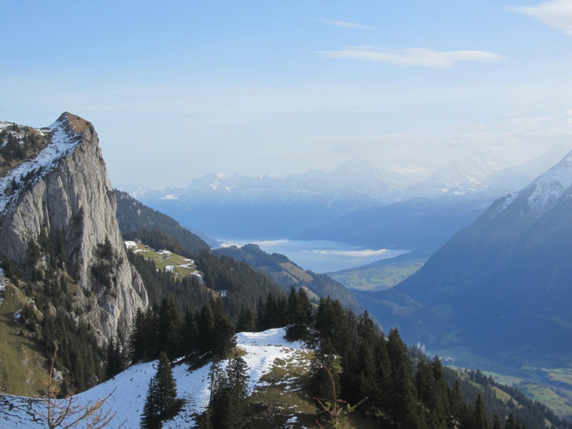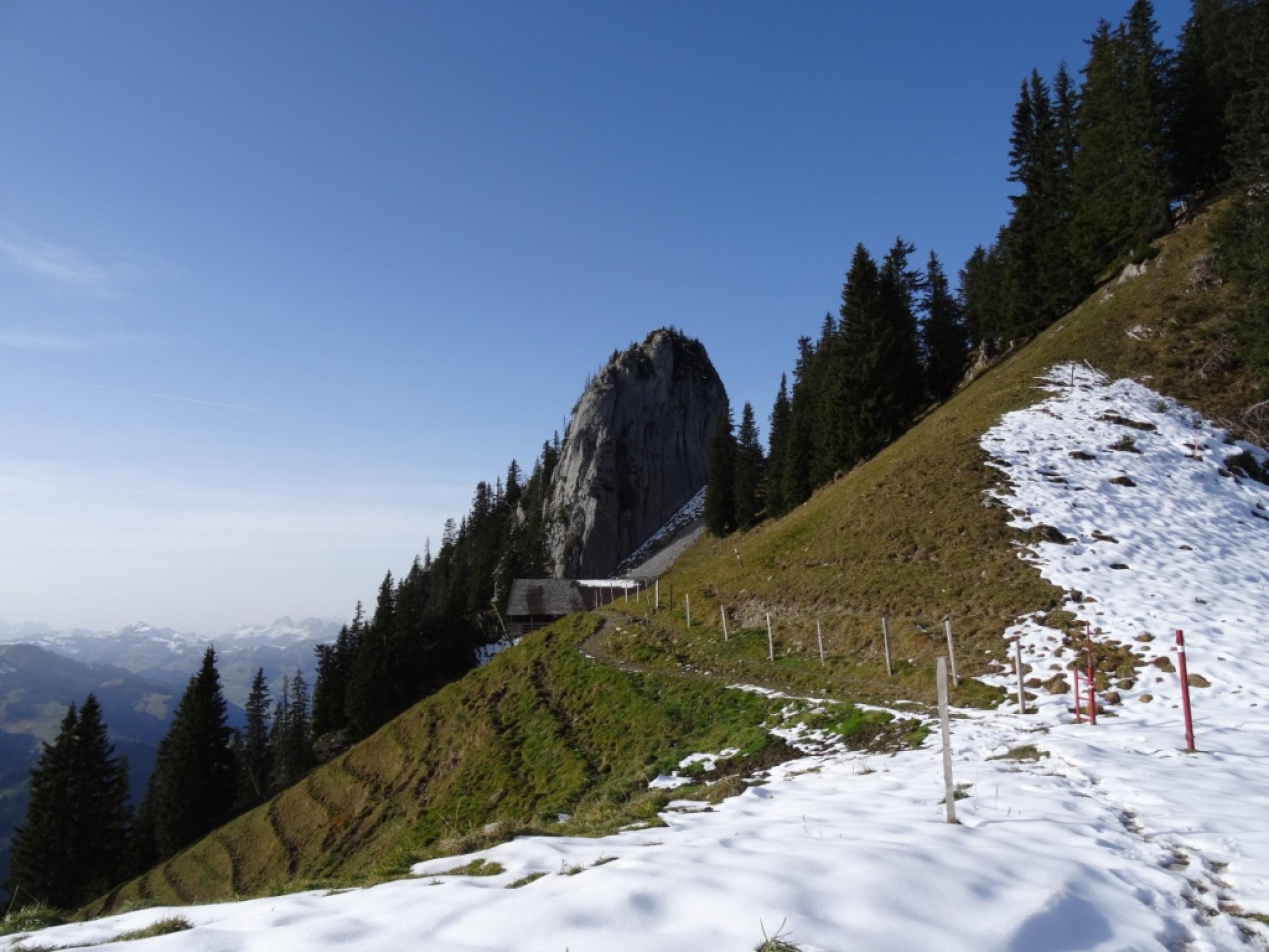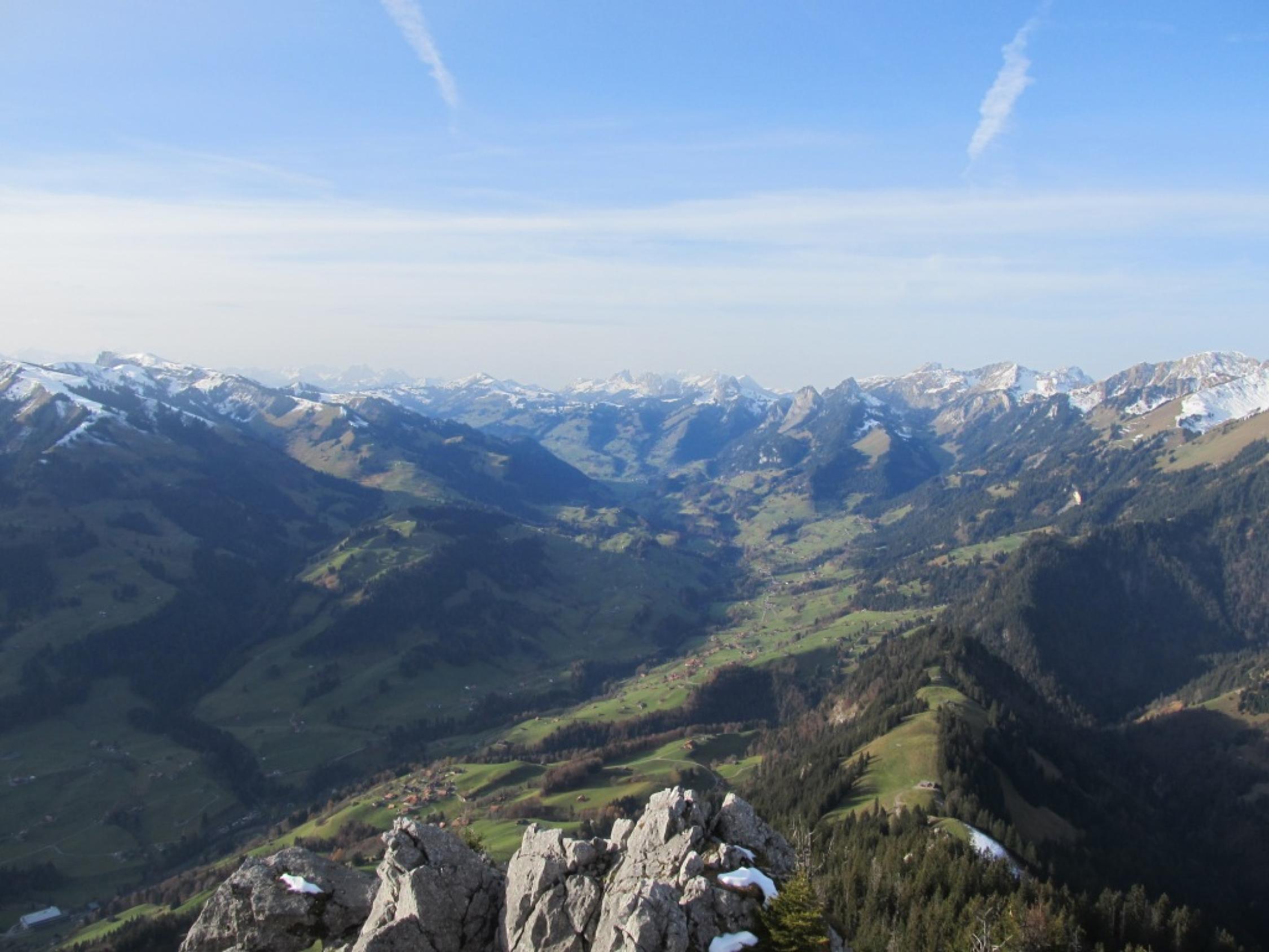 Sehr warm im Aufstieg, sehr angenehm mild auf dem Looherehürli, relativ windig auf der Stockeflue. Die Sicht heute etwas getrübt.