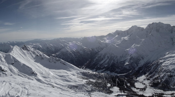 Perfekt: Sehr viel Schnee im Gebiet, sehr gut gesetzt, oben im SW-Hang Sulz (im November!), unten in den NW-Hängen alter Pulver