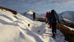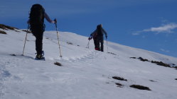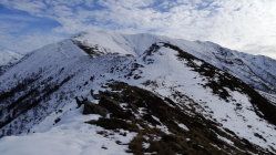 Ab Cappana Monte Bar bis kurz vor S. Lucio alles Schnee. Meistens windgepresst oder sulz, selten pulvrig. Die Capanna S. Lucio kann ohne Schneeschuhe vom Tal erreicht werden. Von Italien sogar mit dem Allrad-PKW