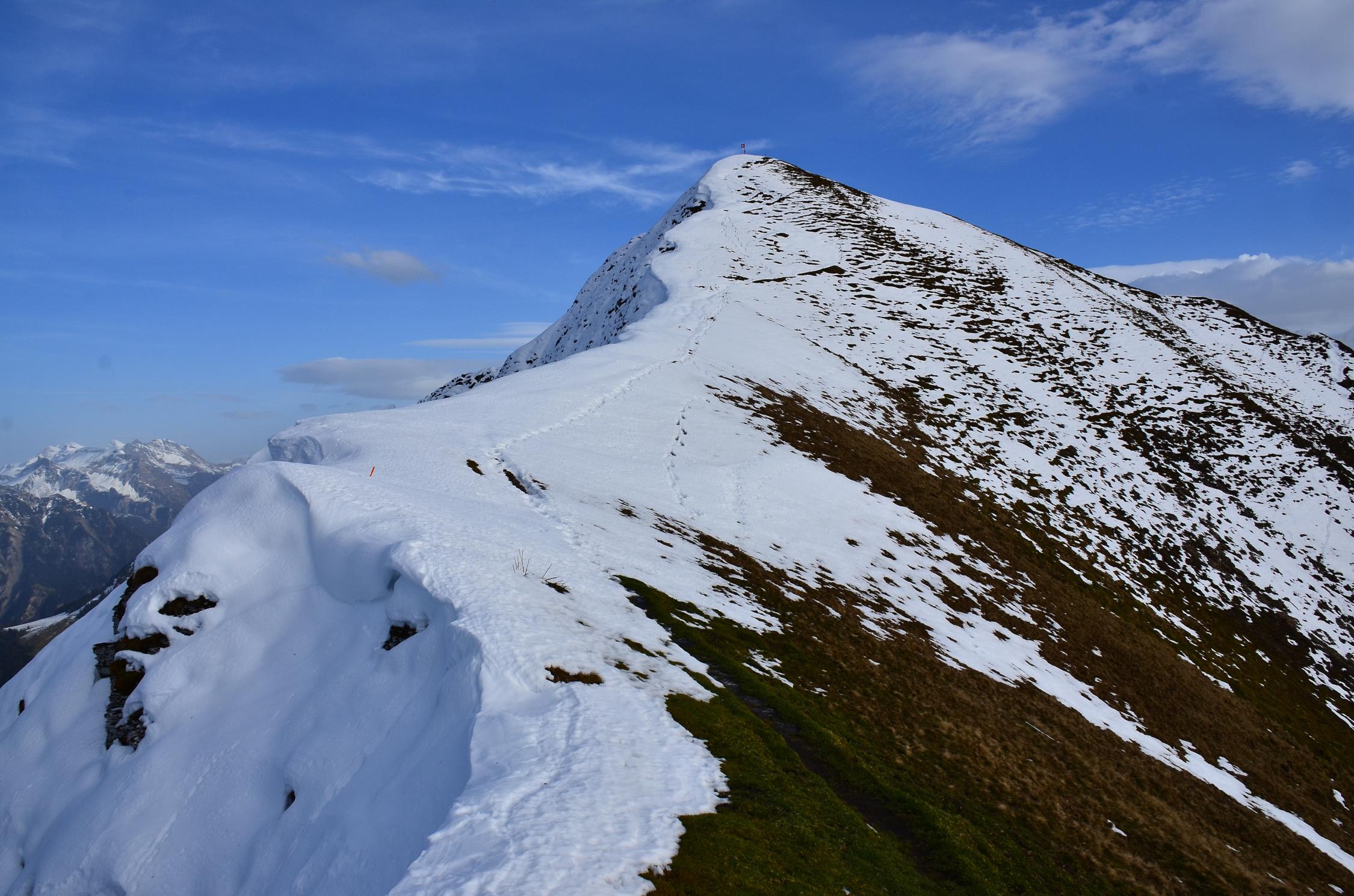 Ich war fast alleine am Berg. Bloss 2 Gleitschirm-Piloten mussten wegen den starken Föhnartigen Wind zu fuss absteigen.
