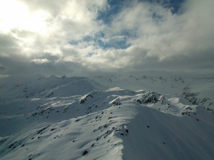 Bei der Ankunft in Hospental herrschten viel zu warme Temperaturen, 9 Grad und föhniges Wetter. Entsprechend war die Schneedecke unterhalb 1800 MüM sehr angegriffen und dünn, ging im Aufstieg gerade so mit kurzer Tragestrecke. Darüber dann genügend, ab 2000 MüM viel durchfeuchteter Schnee. Ab Ende Skilift hart, im Gipfelhang daher in der glasigen Spur Harsteisen angenehm. Das wechselhafte Wetter lieferte schöne Stimmungen, siehe Fotos. Die Abfahrt war im oberen Teil besser als erhofft, hart und etwas zerfahren, aber nicht unangenehm. Im Mittelteil dann gut schwingbarer Nassschnee, und über den Schlussteil schweigt des Sängers Höflichkeit. Nur soviel: Hatte nicht die Steinski dabei, daher: Wer seine schönen Ski schätzt, trägt...