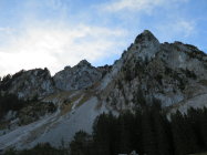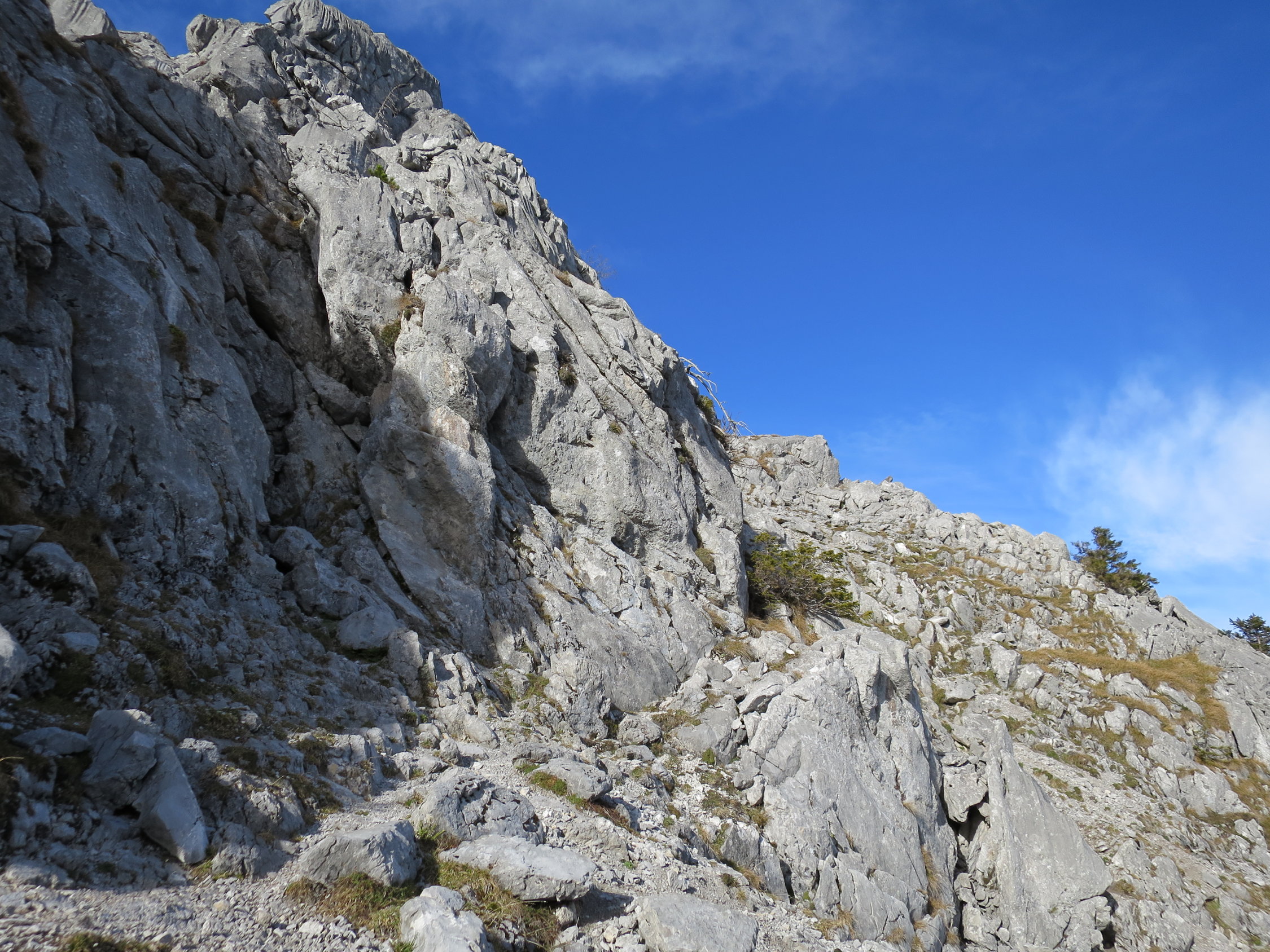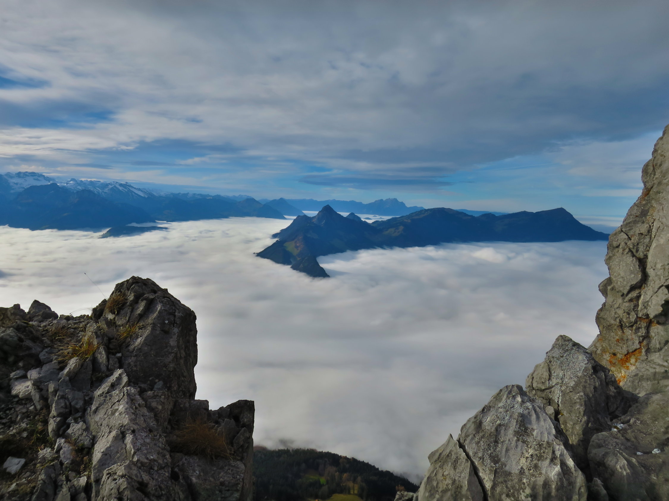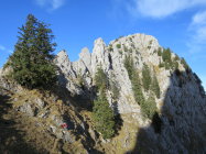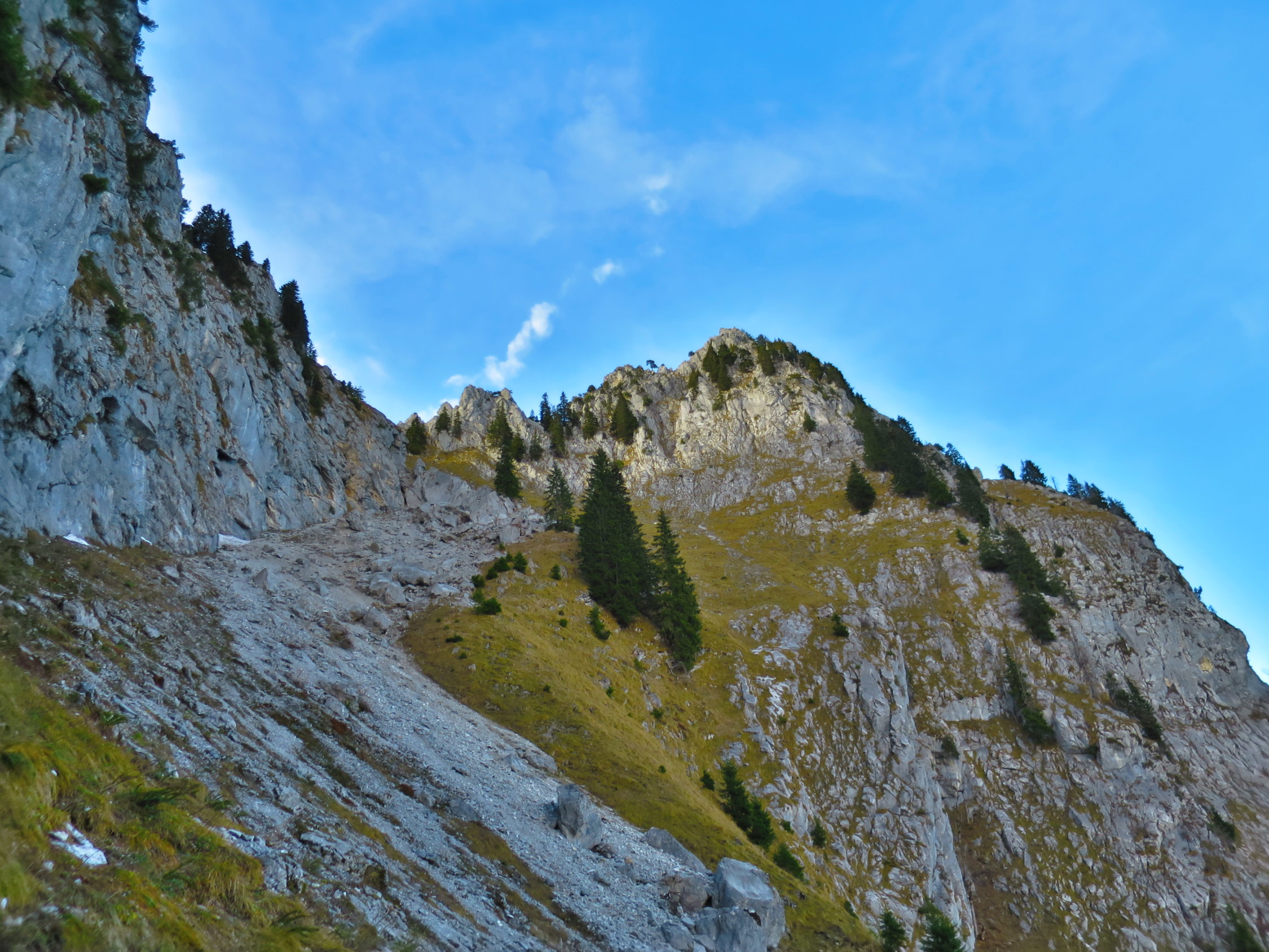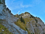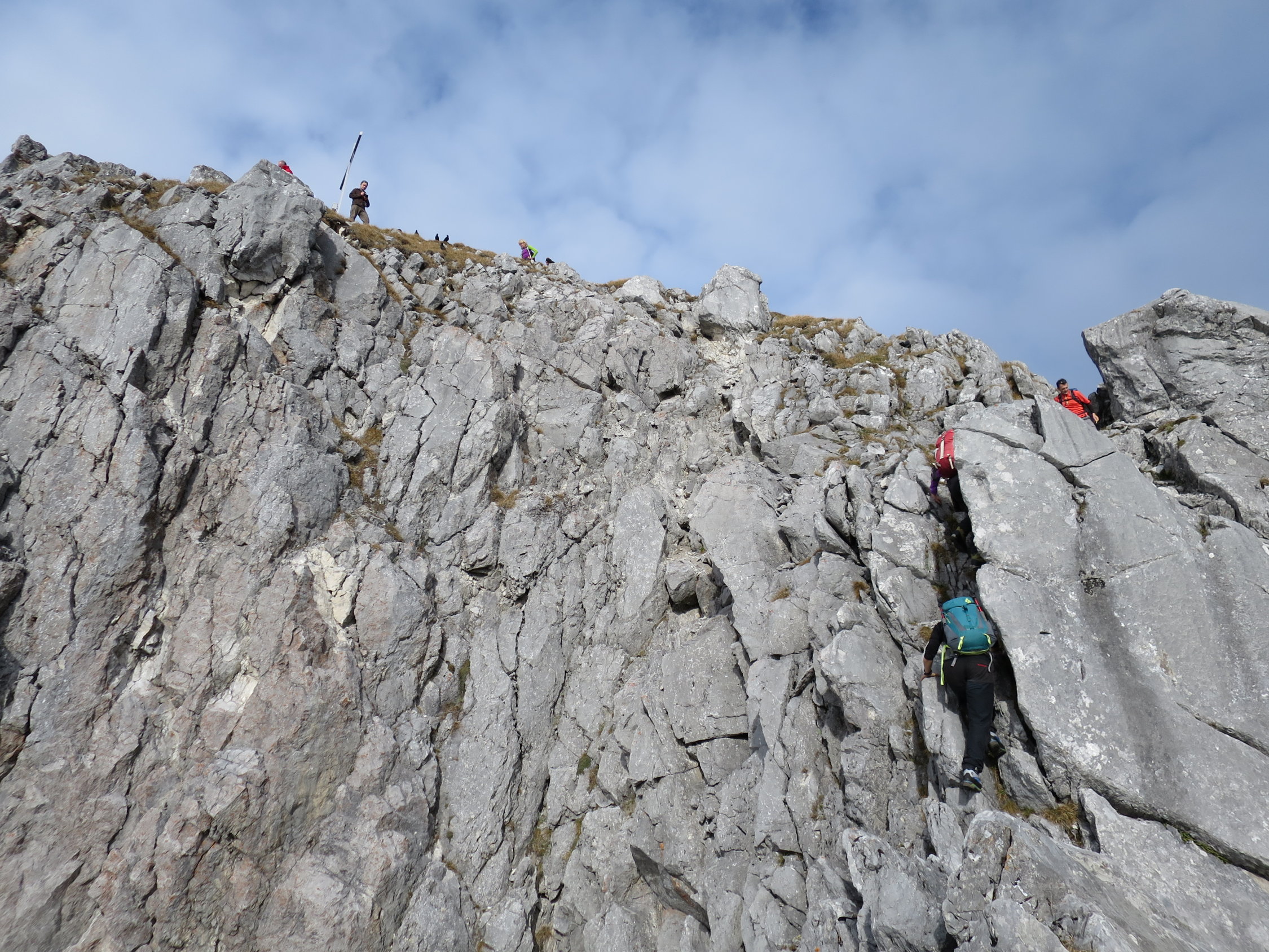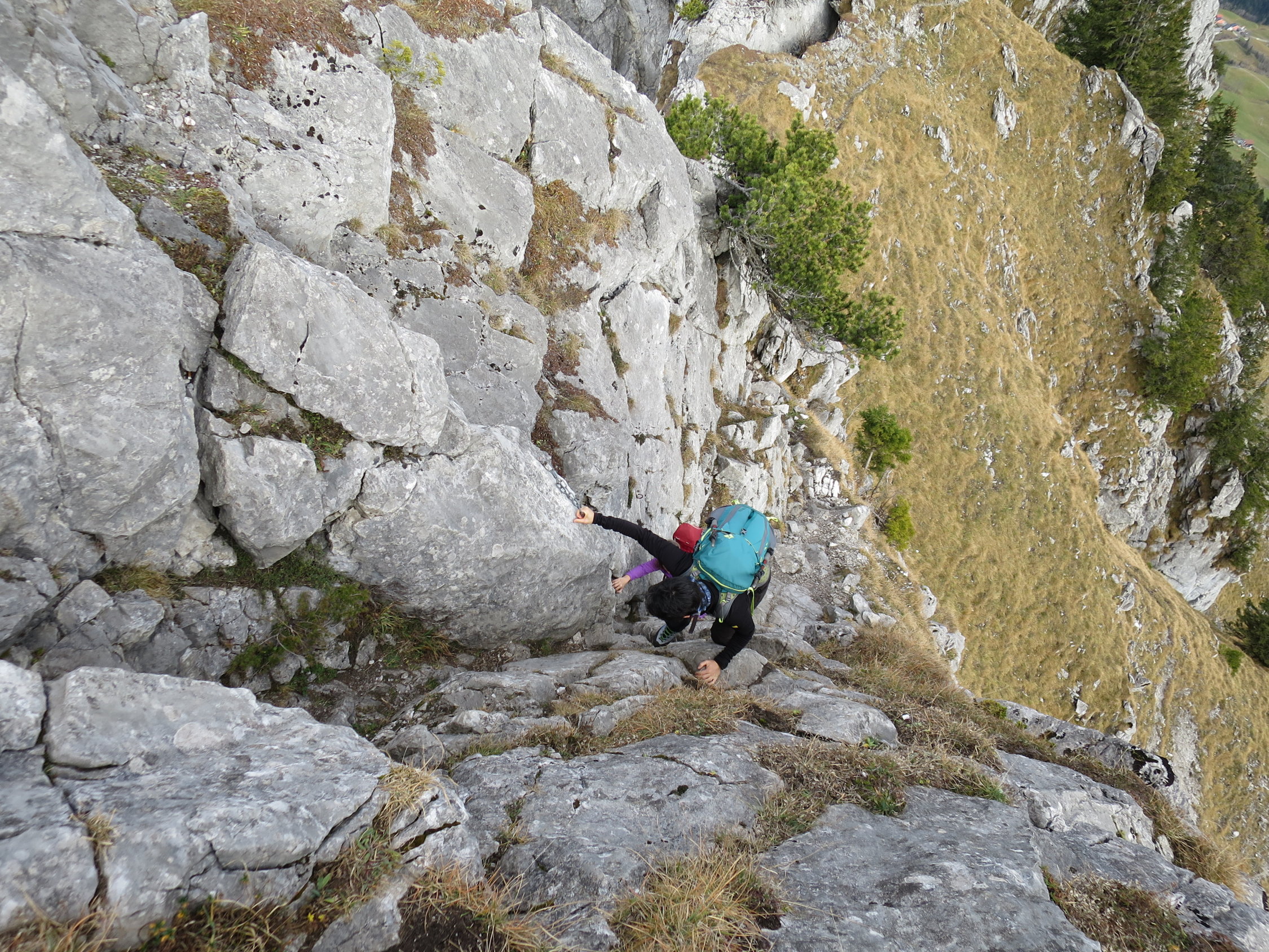 Schwyz, Post - Günterigs - Pkt 1438 - Kleiner Mythen - Griggeli - Brunni Ab Schwyz, Post folgt man dem Wanderweg via Chlösterli und Günterigs zum Zwischenmythen-Pass (Pkt 1438); von hier zunächst via Wanderweg auf den Vorgipfel des Kleinen Mythen. Nach dem Vorgipfel führt der Weg weiter dem Grätchen entlang nordwärts und man klettert zunächst eine Felsstufe nach unten und befindet sich auf der Ostseite des Felsens, bevor man auf die Westseite des Grats wechselt. Nun folgt wiederum ein Kletterabstieg auf der östliche Gratseite, bevor man dann den Wegspuren folgt, die zur Ostflanke des Gipfelaufbaus führen. Der Aufstieg zum Kleinen Mythen erfolgt über griffigen Fels von Süden her. Wir sind über eine rechts vom "Kamin" sich befindende Geröllrinne zum Fuss des Gipfels und dann weiter in ein kleines Sättelchen (ca.1720m) abgestiegen, von welchem sich Wegspuren nordwärts ziehen. Auf einer links sich hochziehenden Grasflanke sind wir aufgestiegen bis auf eine Felsrippe. Diese überschreiten wir und folgen Wegspuren zum Griggelipass, der sich zwischen dem Kleinen Mythen und dem Haggenspitz befindet. Aus Zeitgründen steigen wir nun in die zunächste grasige Ostflanke ab, später folgen wir dem Verlauf des Geröllhangs und gelangen durchs Gebüsch zum kleinen Hügel (Pkt 1275). Via die Brunniweid gelangen wir nach Brunni.