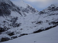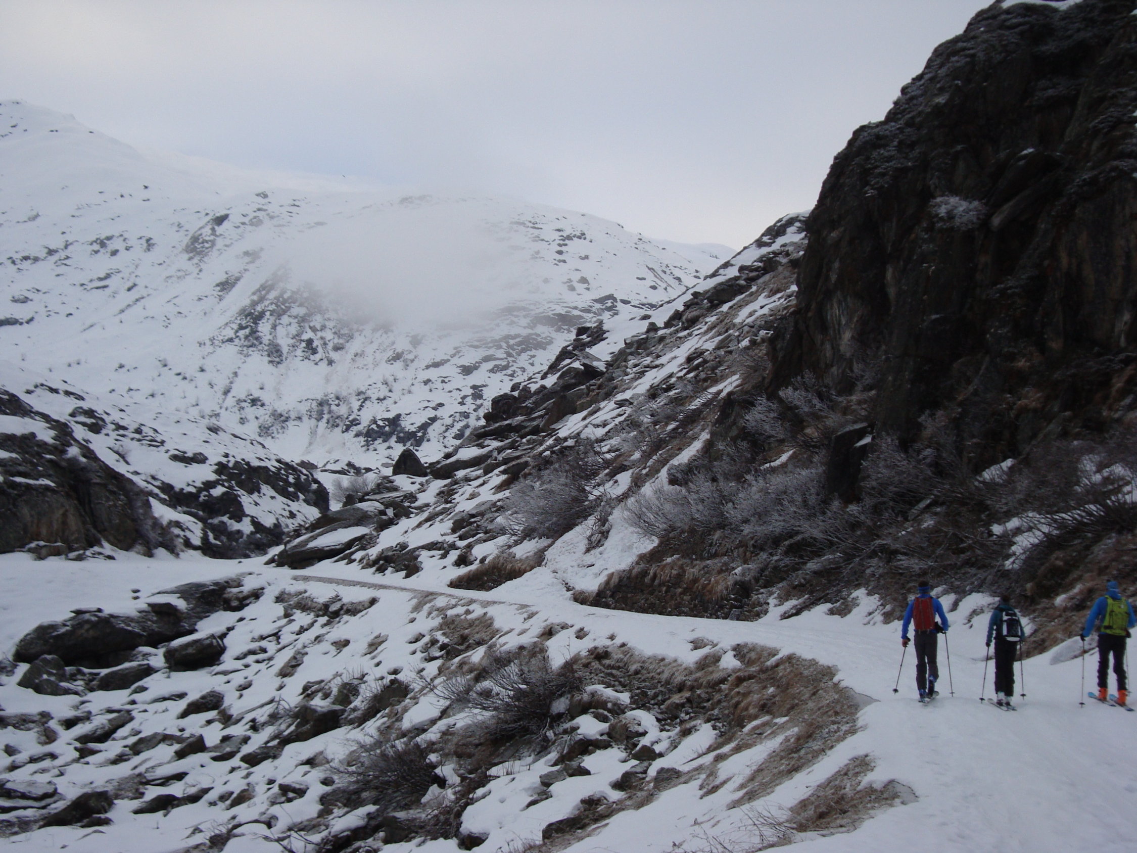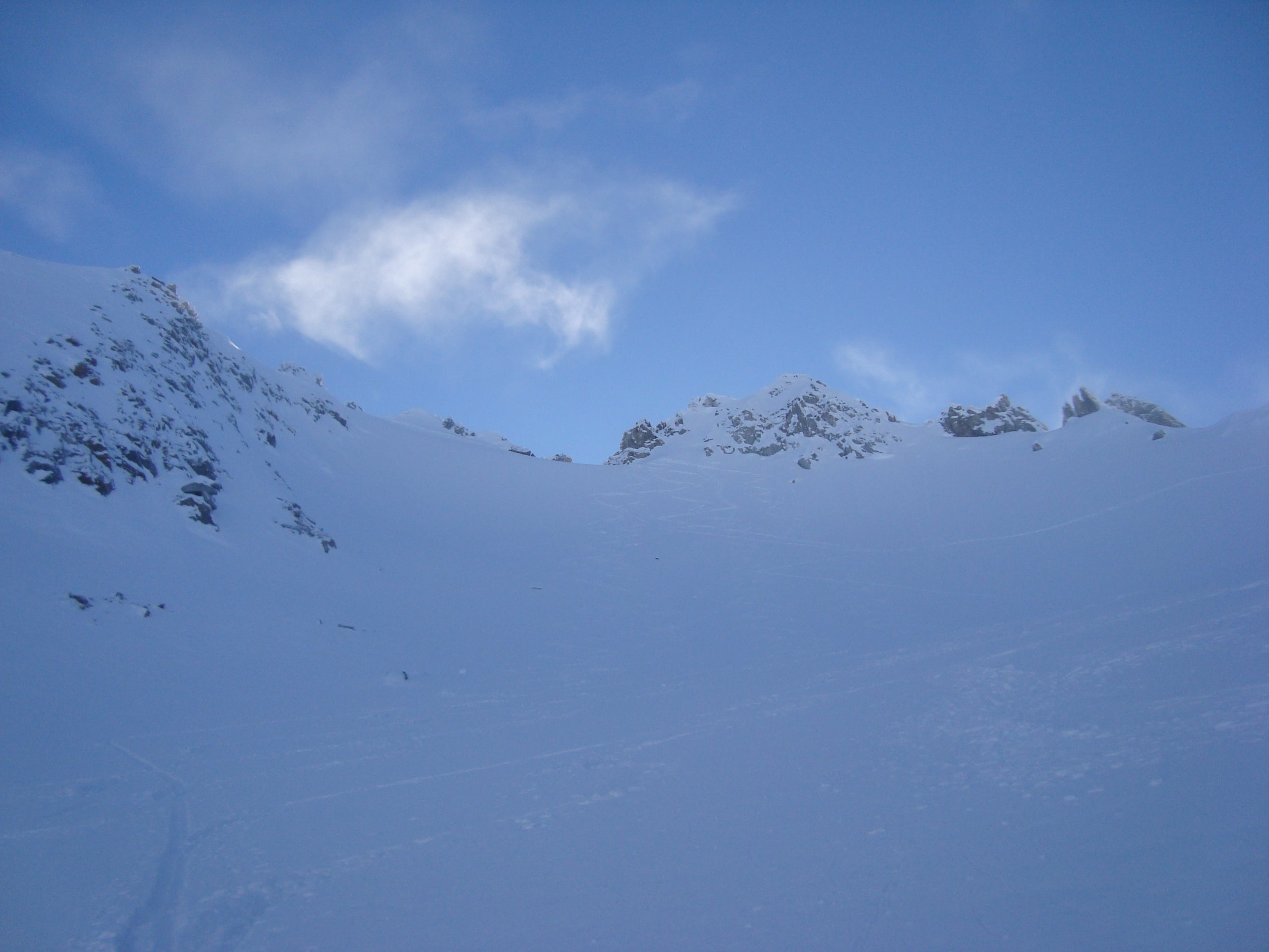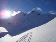 Nun zerfahrener und gefrorener Untergrund bis Hinter Schweig. Ab dort bessern sich die Schneeverhältnisse zusehens und gipfeln, mit zunehmenden Höhengewinn, in 10-15cm frischen Pulver auf gut verfestigten Untergrund.