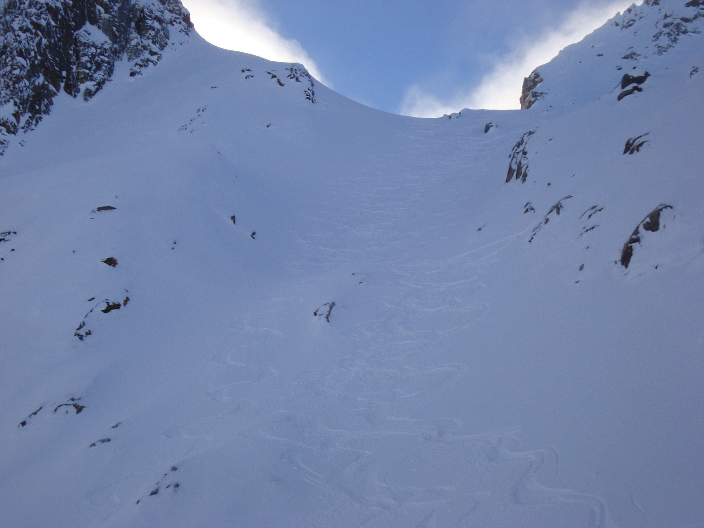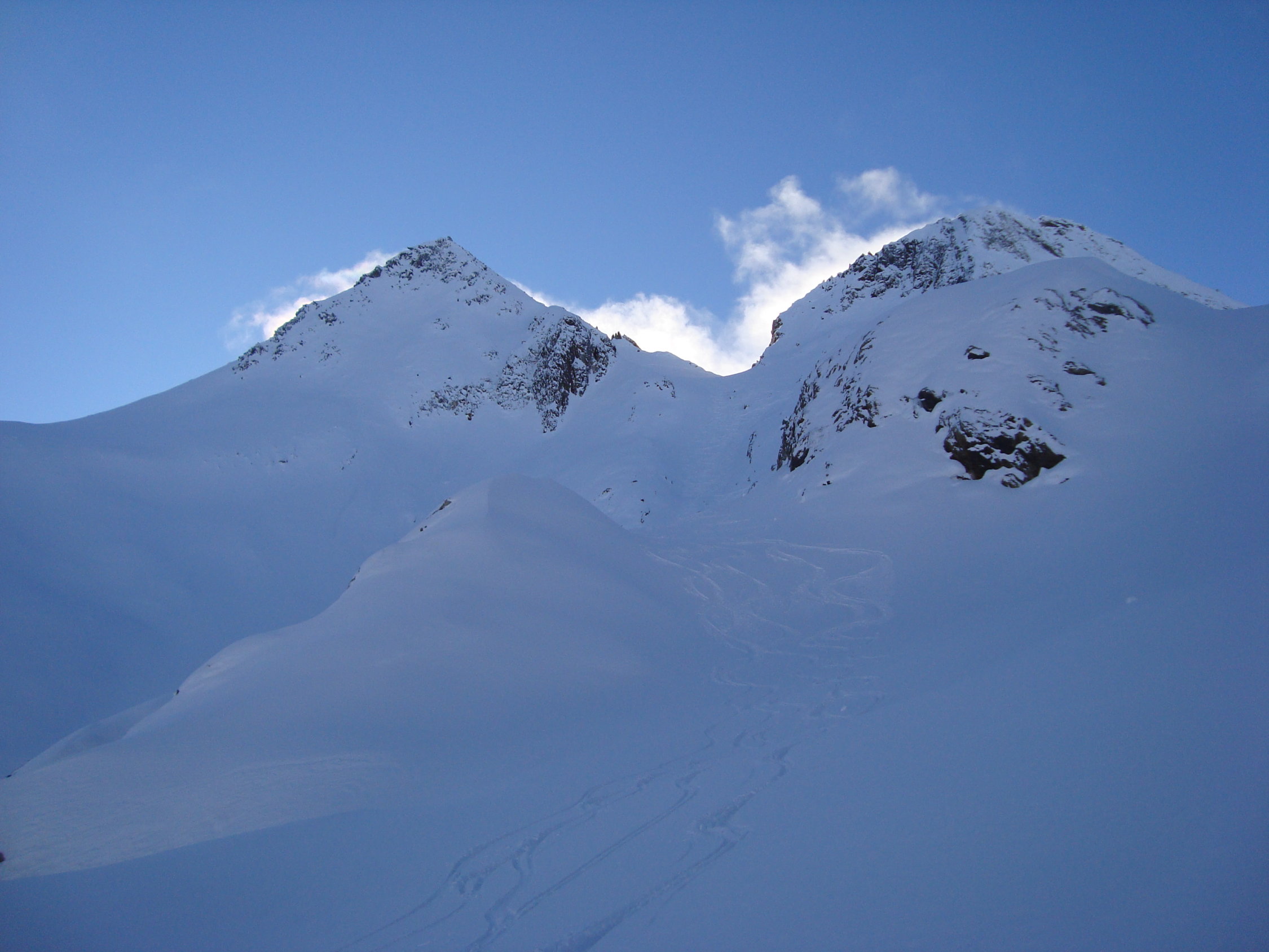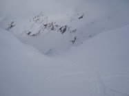 In den steileren Hängen kam bei der Abfahrt die Neuschneeschicht etwas ins rutschen, wenn es ergiebig darauf schneit, mutiert diese zu einer Gleitschicht.