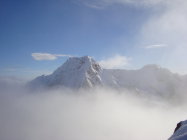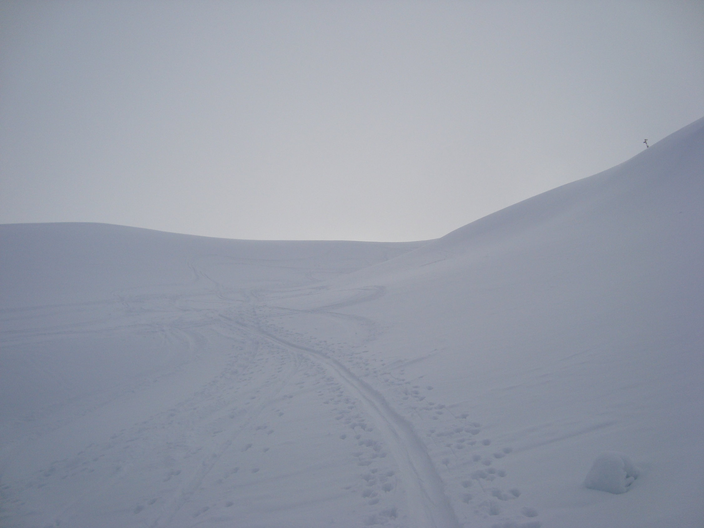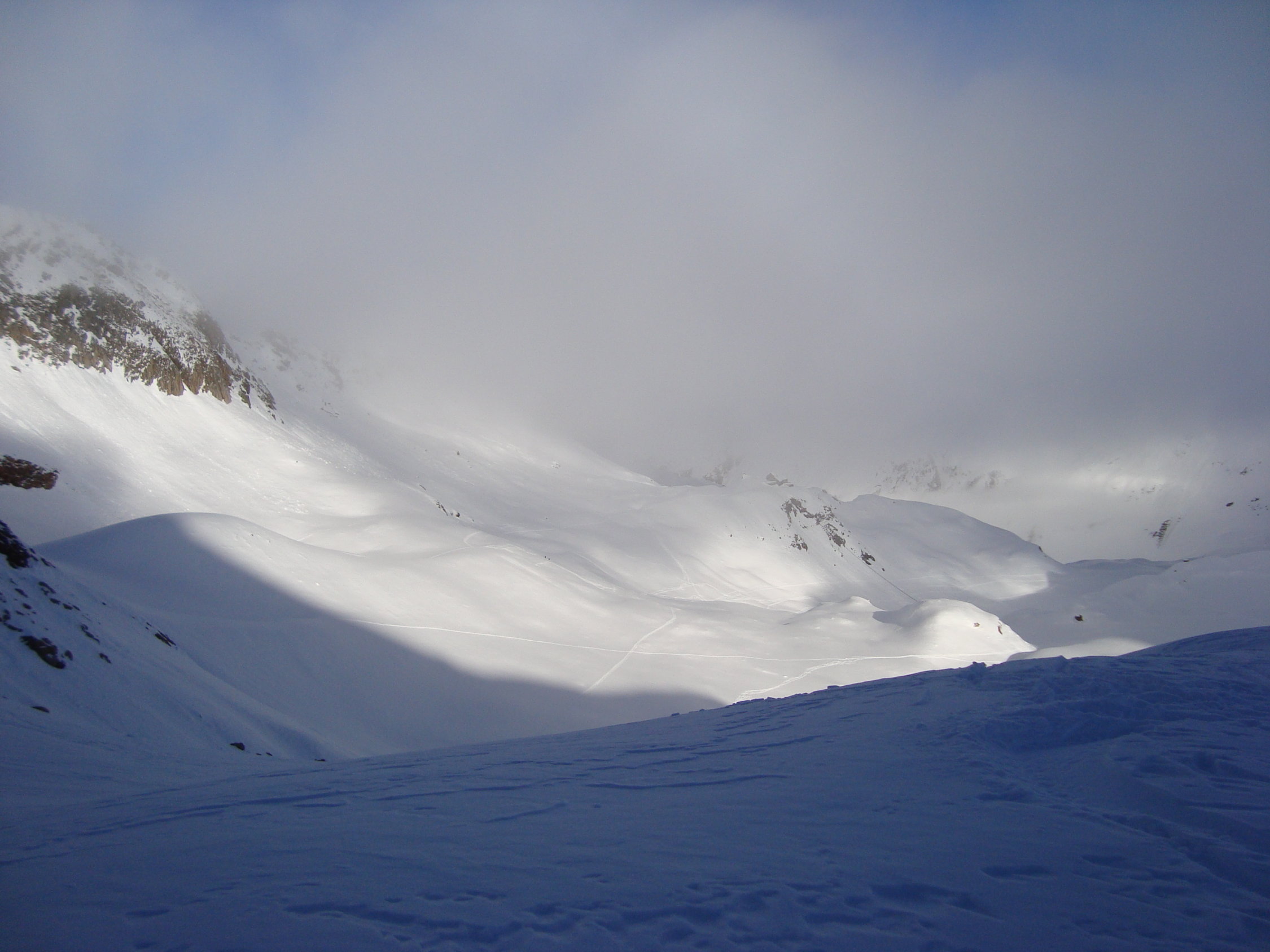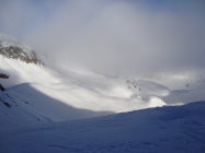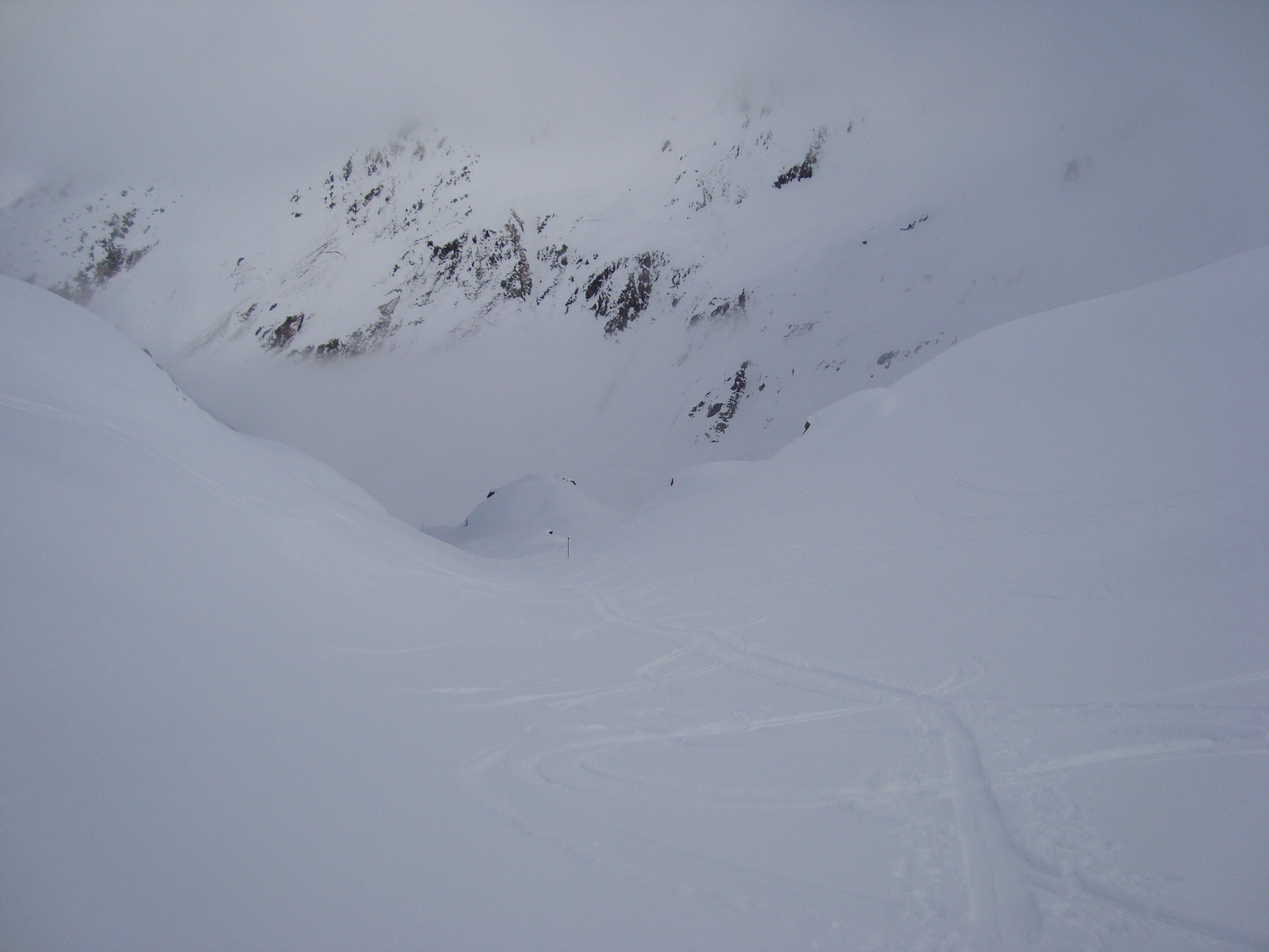 Nach zaghafter Nebelauflösung ,hatte ich das Glück, bei schöner Sicht vom Gipfel abzufahren.