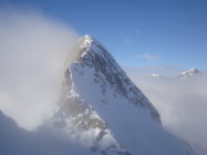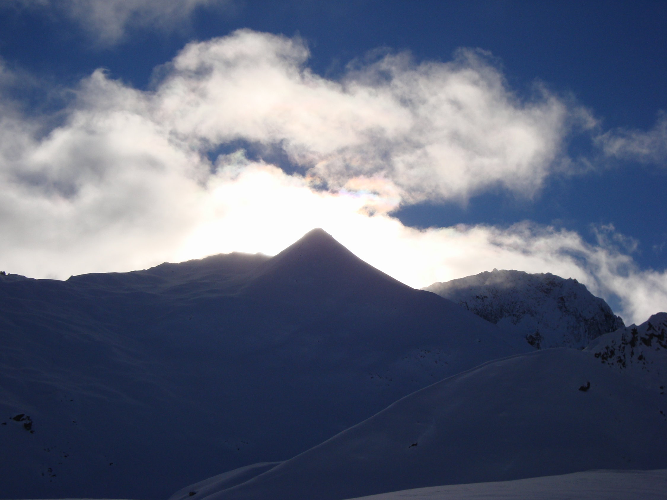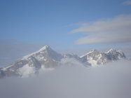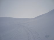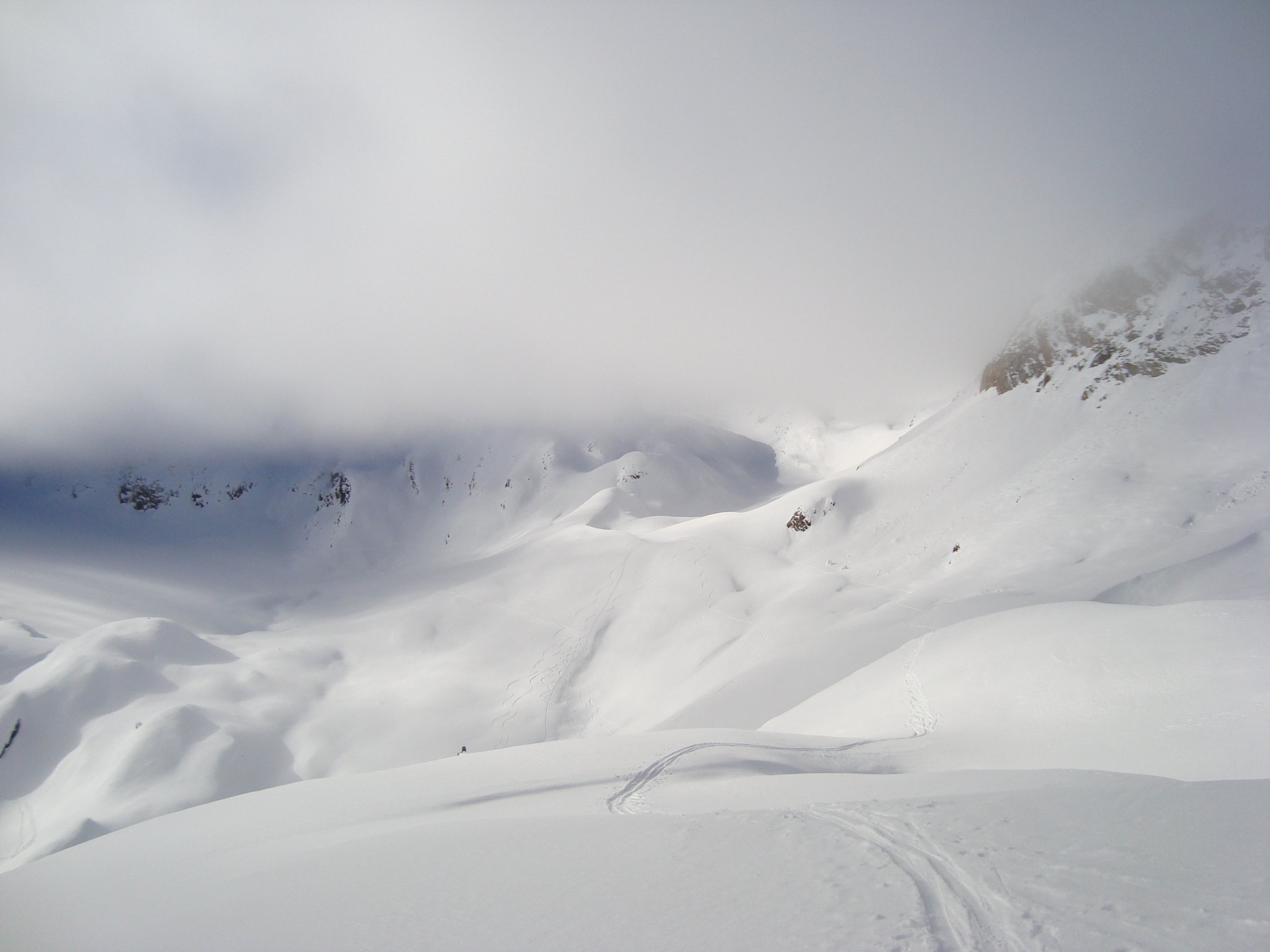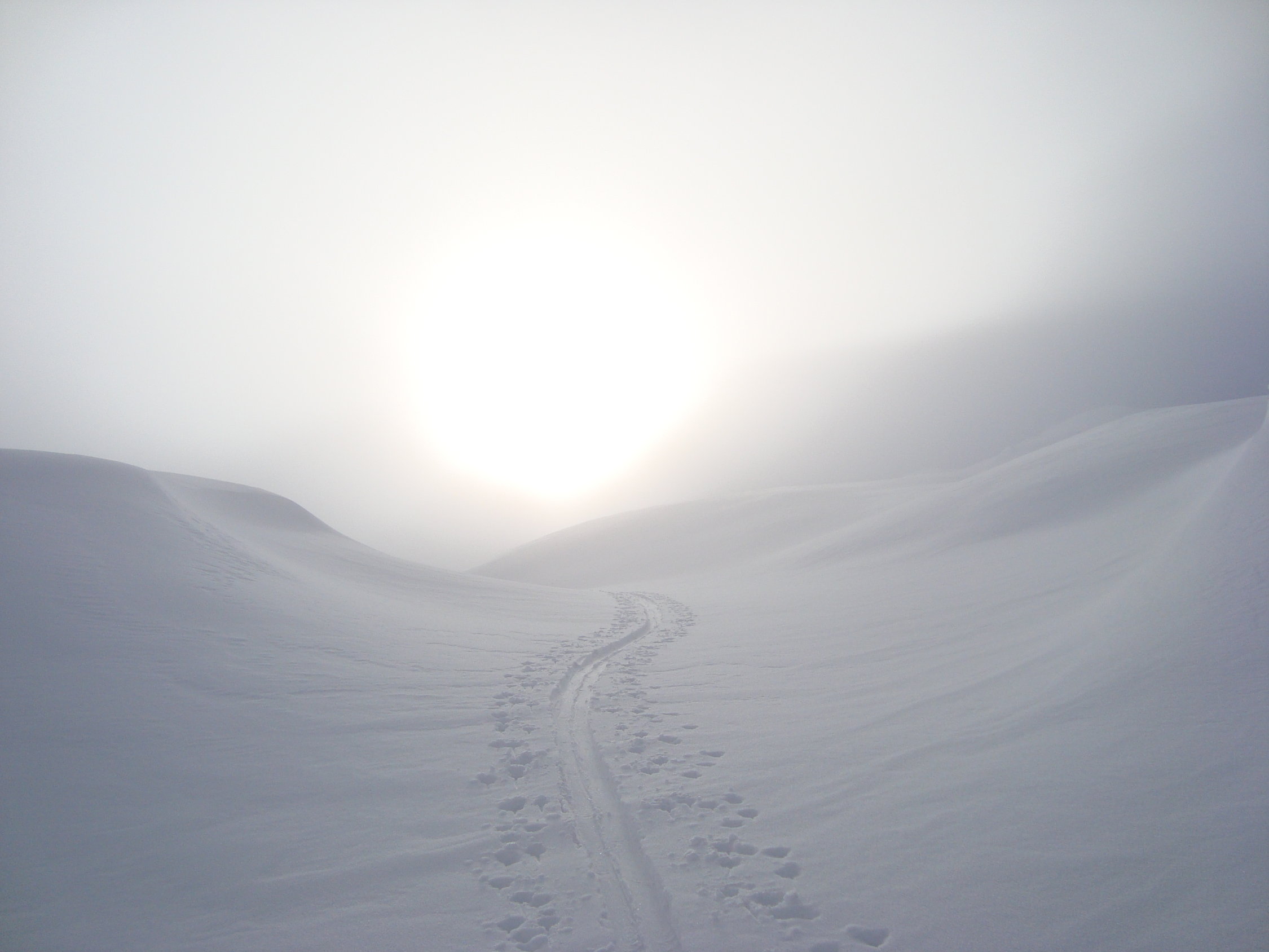 Nach zaghafter Nebelauflösung ,hatte ich das Glück, bei schöner Sicht vom Gipfel abzufahren.