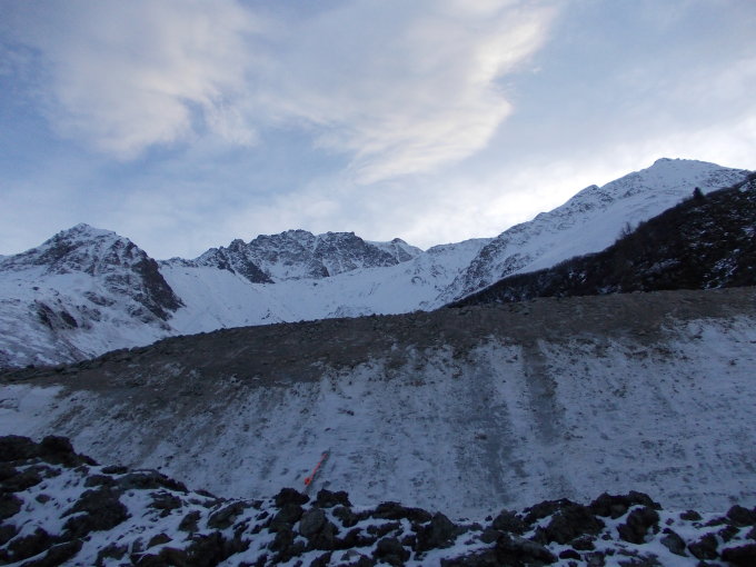 Das Tal von Combe de Drone ist gut eingeschnneit. Es war eine hartgefrorene Schneeschicht vorhanden, mit 5cm - 20cm Pulverschnee darauf.