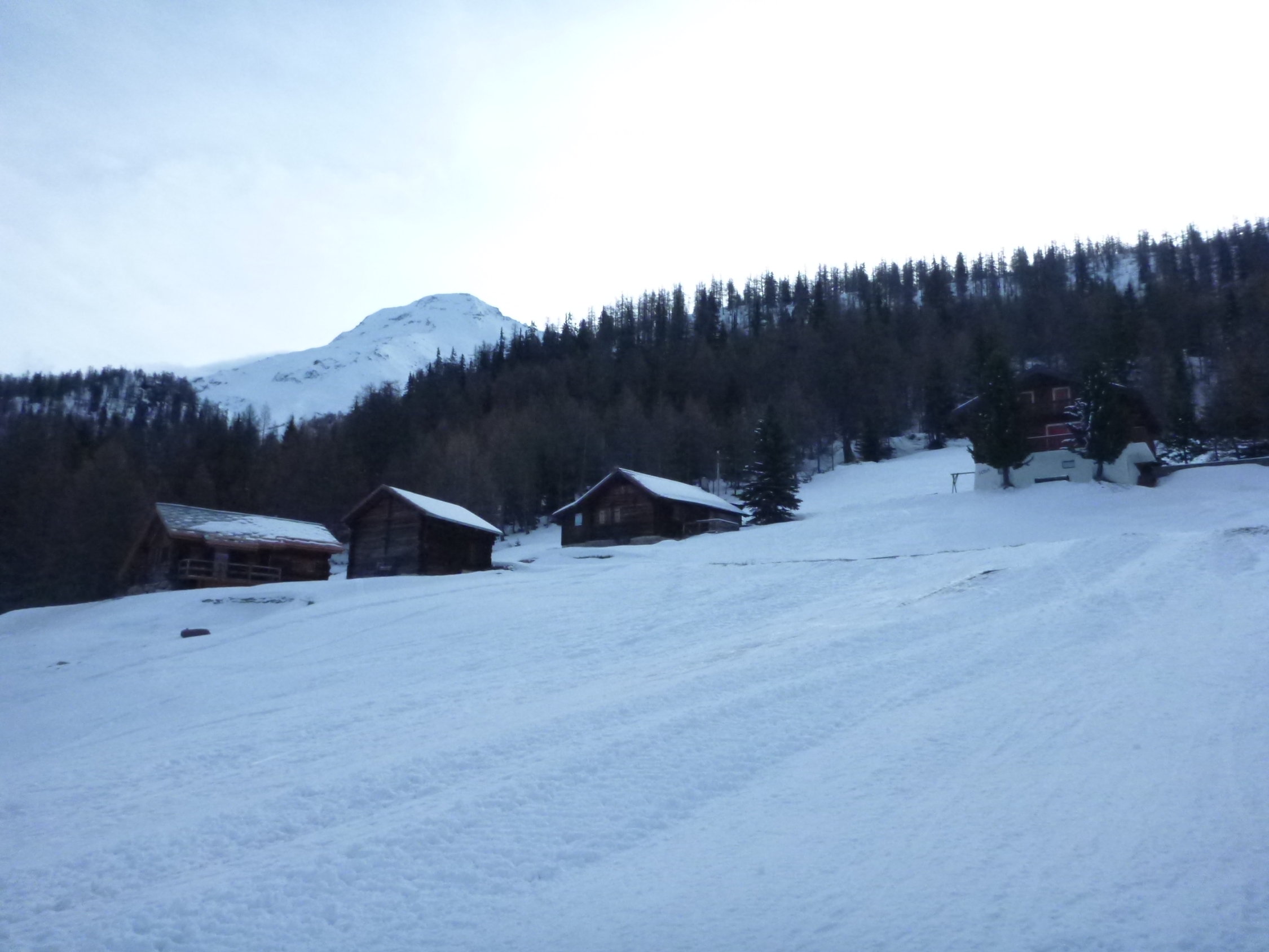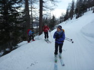Ab Rothwald Start auf der Piste. So müssen die Ski nur wenige Minuten getragen werden. Die Verhältnisse sind erstaunlich gut. Es hat sehr viel Schnee.