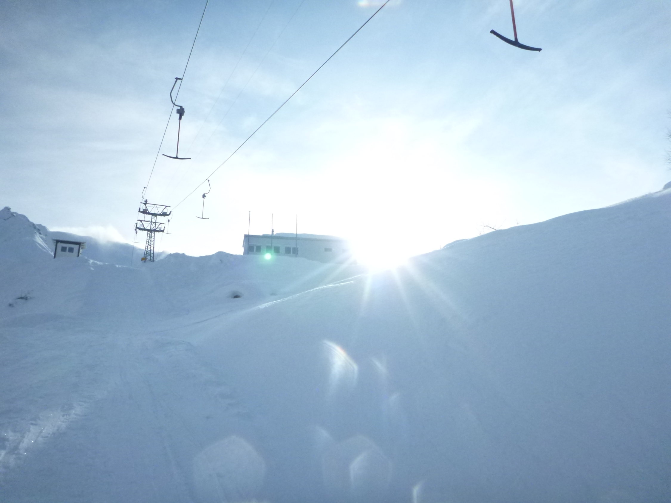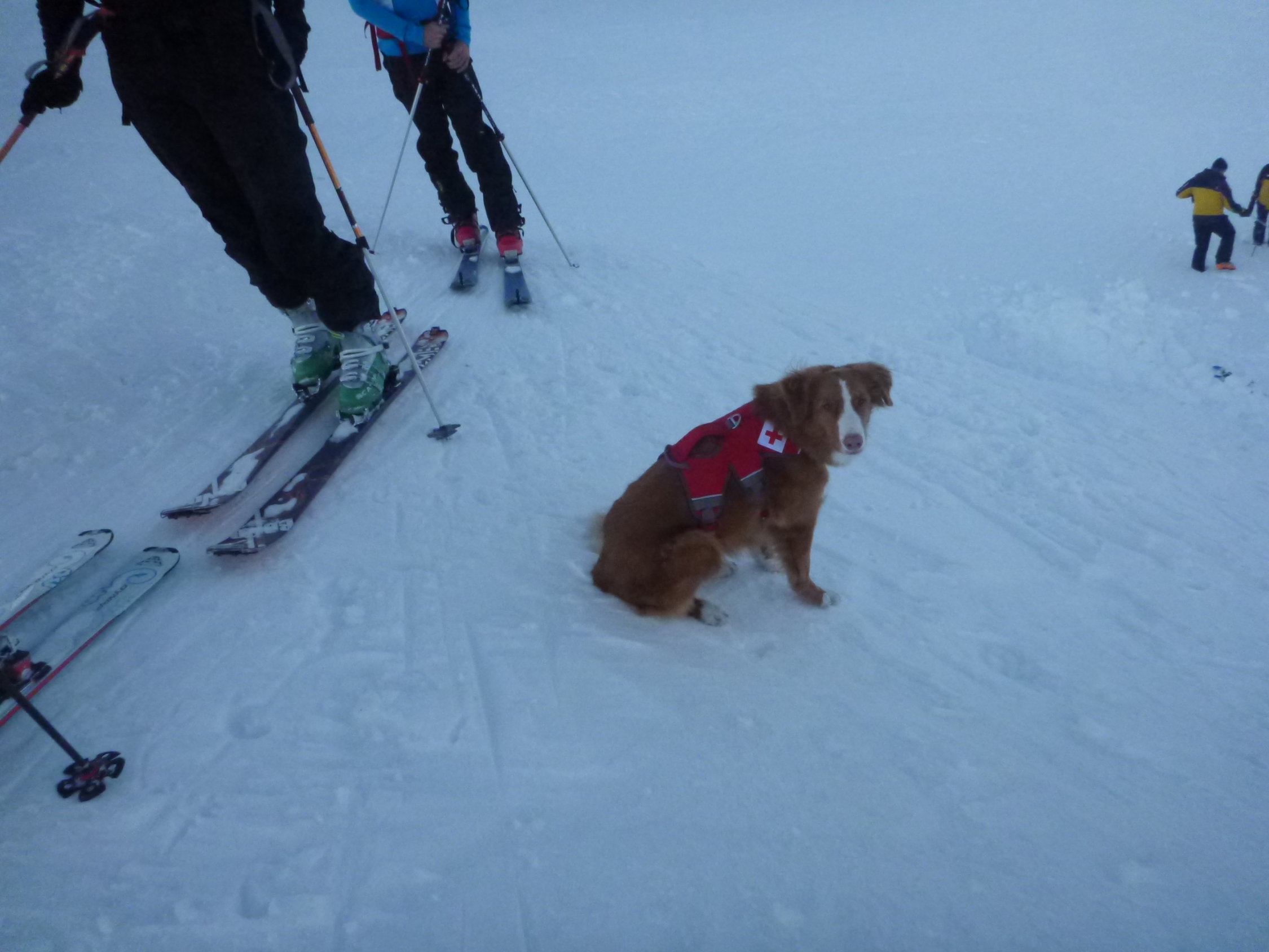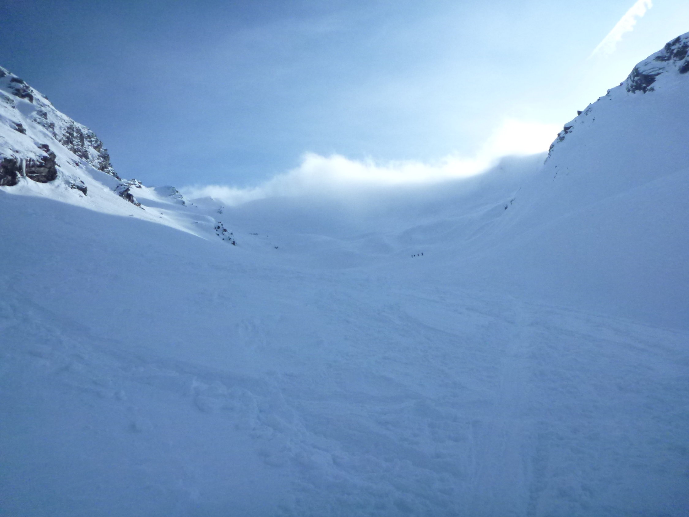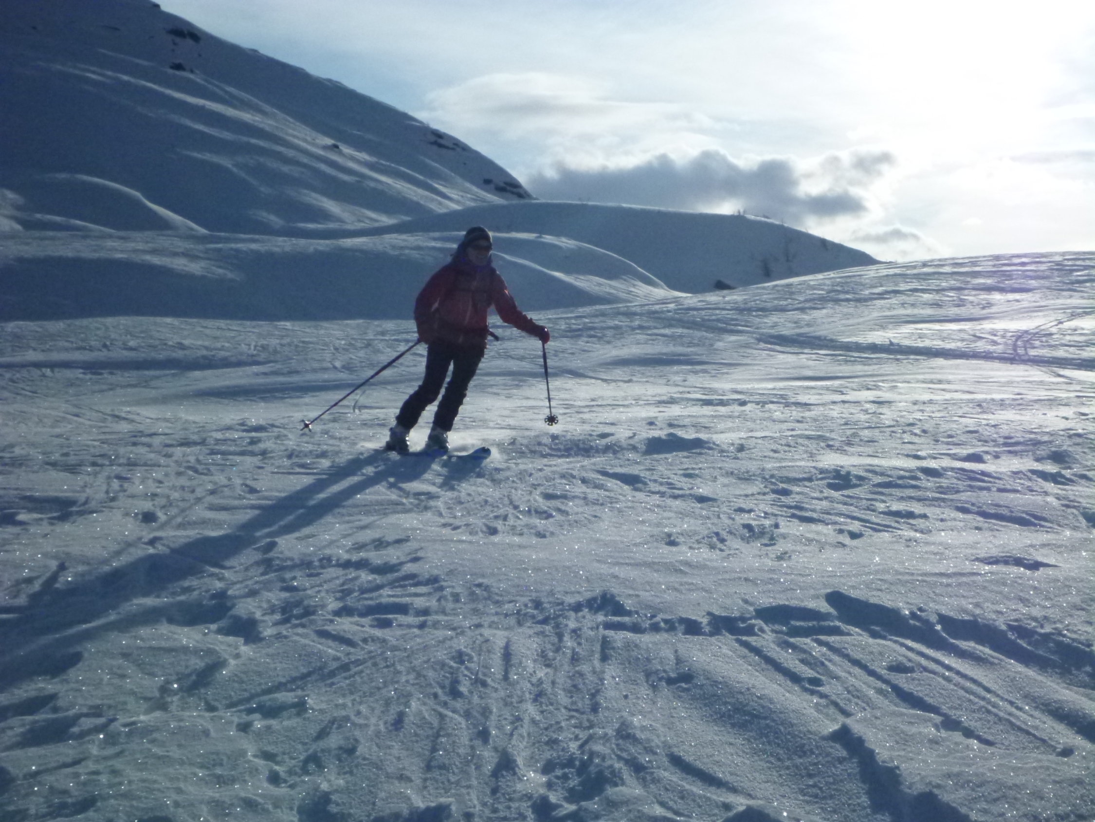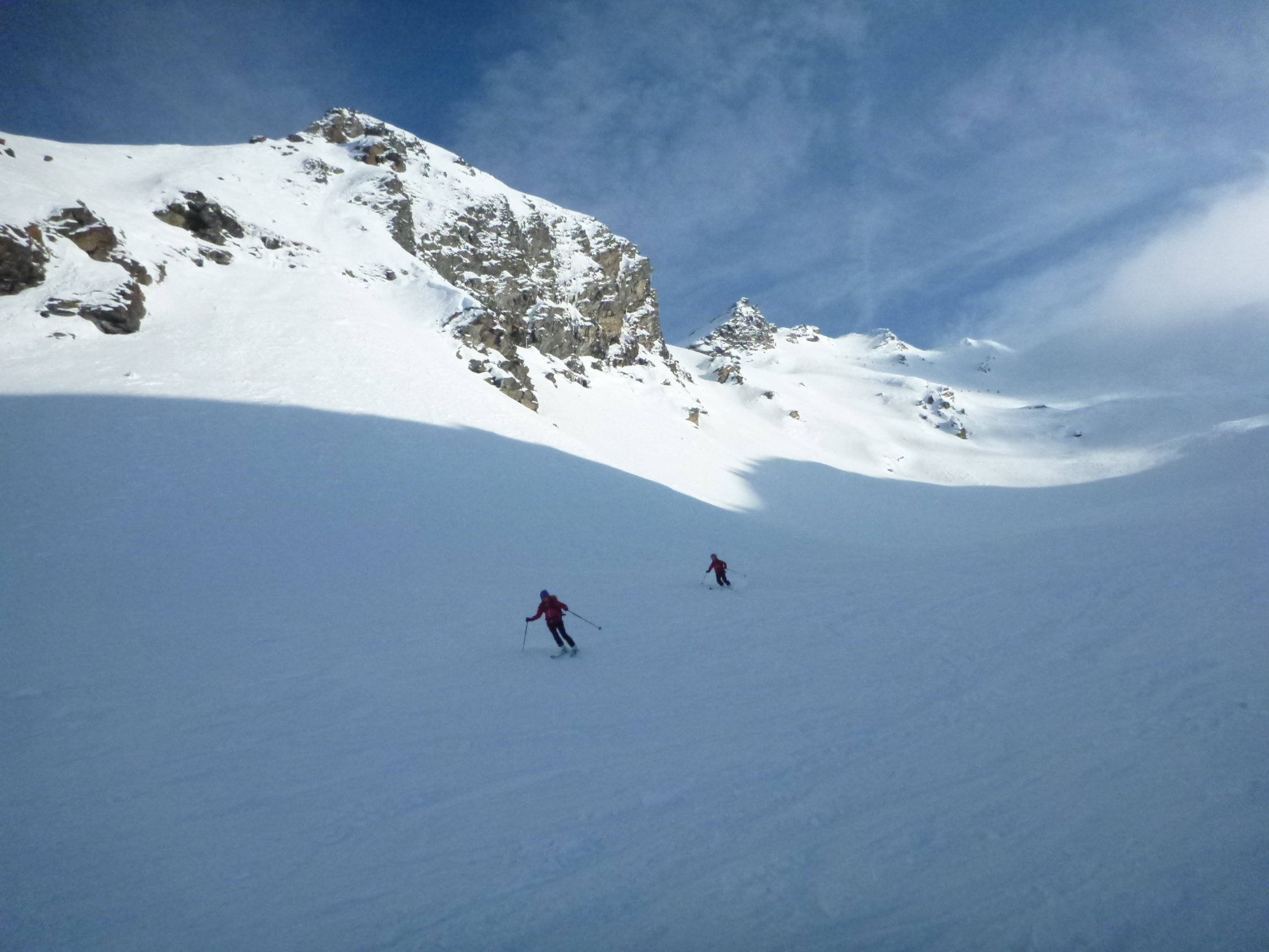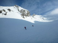 Abfahrt auf hartem Schnee, teilweise etwas pulvrig. Gut fahrbar-