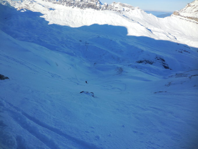 Start um 7.45 Uhr auf 135O m bei kalten Temperaturen, entlag der Alpstrasse bis Galtenebnet, der Schneefall der letzten Nacht war sehr bescheiden es gab nur wenige mm Niederschlag, Aufstieg zum Sangigrat der schönePulverschnee in der Mulde war schon ziemlich Verblasen, Abfahrt Alpstasse decklig.