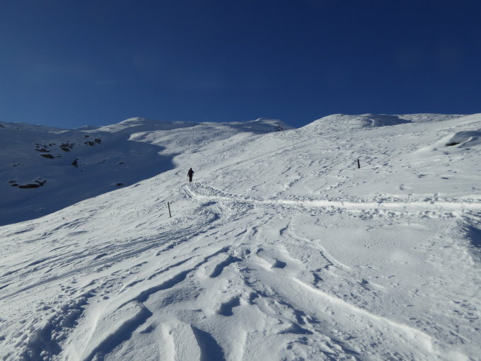 In Realp hat es sehr wenig Schnee doch schon nach einer viertel Stunde ist der dickste Winter da. Der Aufstieg ist gut gespurt und gut zum gehen. Oben hatte heute der Wind etwas geblasen doch er war nicht extrem. Es waren erstaunlich wenige Leute am Berg etwa 50 Personen meinte ich, auf dem Parkplatz war noch sehr viel Platz vorhanden. Wir marschierten erst etwa um 10.30 Uhr los und hatten die Aufstiegsroute fast für uns alleine. Die Abfahrt war nicht das beste von diesem Winter, doch es war zu fahren. Im oberen Teil war ein Deckelschnee vorhanden, auch dort konnten einige passable Schwünge in den Schnee gezogen werden. Für schlechte Fahrer war es schon etwas streng. Ich meine der Stotzigen hat sich heute wieder einmal gelohnt, vor allem bei diesem herrlichen Wetter.