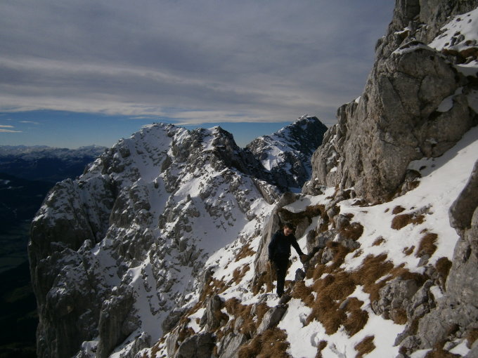 Solange es wenig schneit und warm ist eine super Tour. An der Südseite ist der Grat teilweise schneefrei. Man kommt sehr flott voran.