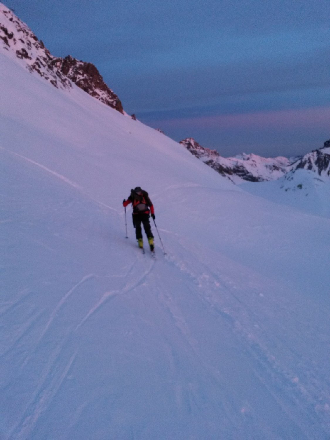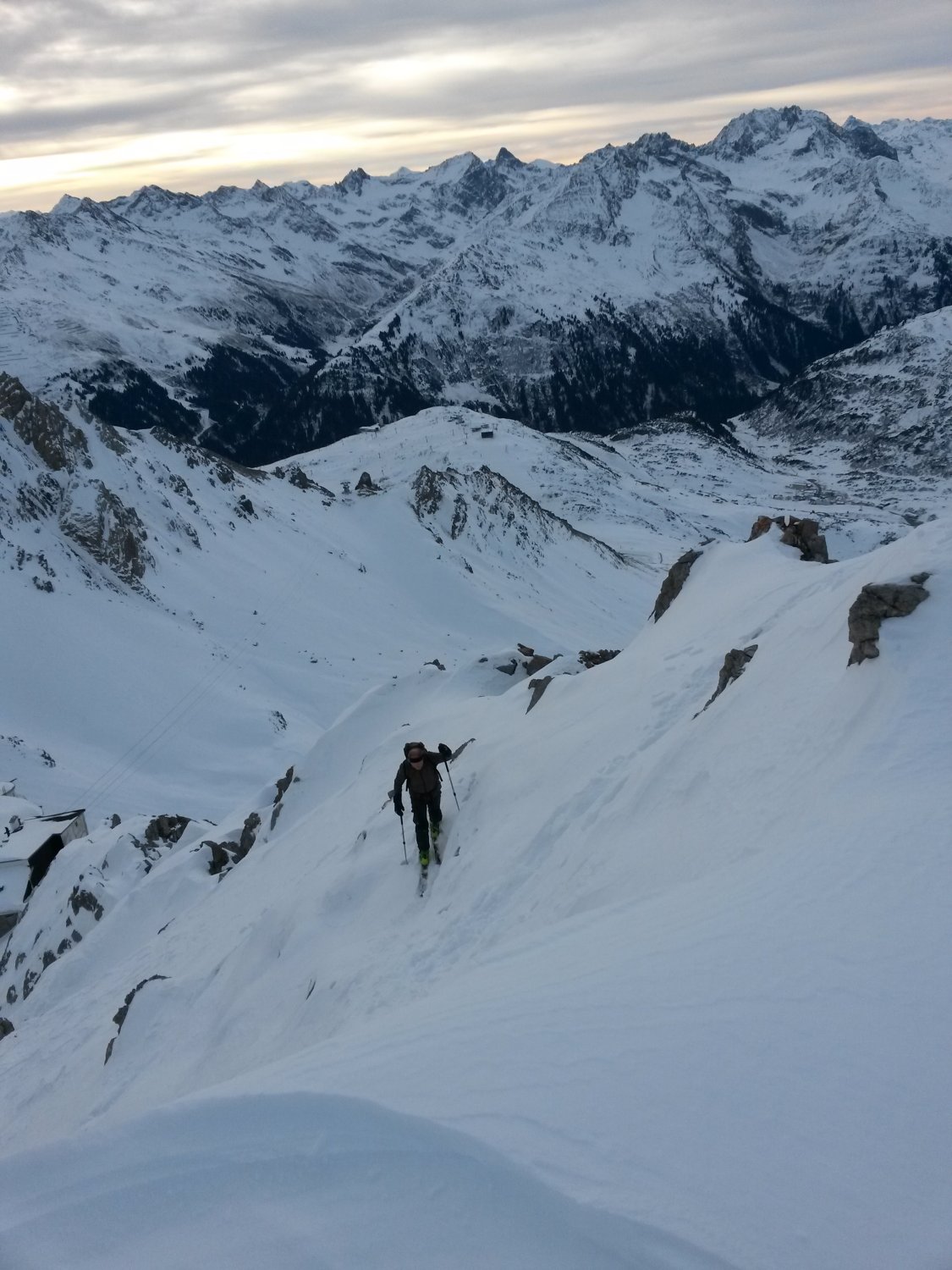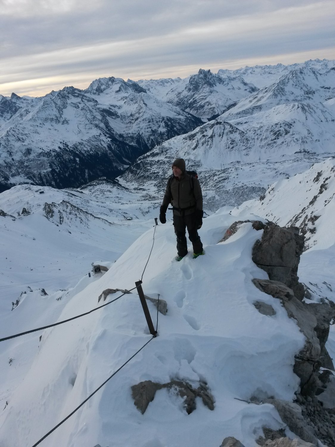 am besten bis 9 Uhr am Gipfel, dann kein Gegenverkehr durch Skifahrer.