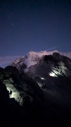 Start 06 Uhr von der Payer-Hütte. Weg im Stirnlampenlicht sehr gut zu finden. Die komplette Kletterei ist schneefrei und trocken. Der Fels ist recht speckig. An den Ketten am Tschierfeckwandl und zum Gletscher runter kann mit einer Bandschlinge + Karabiner gesichert werden (aber nicht zwingend nötig).