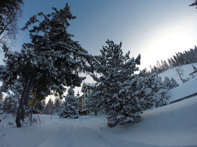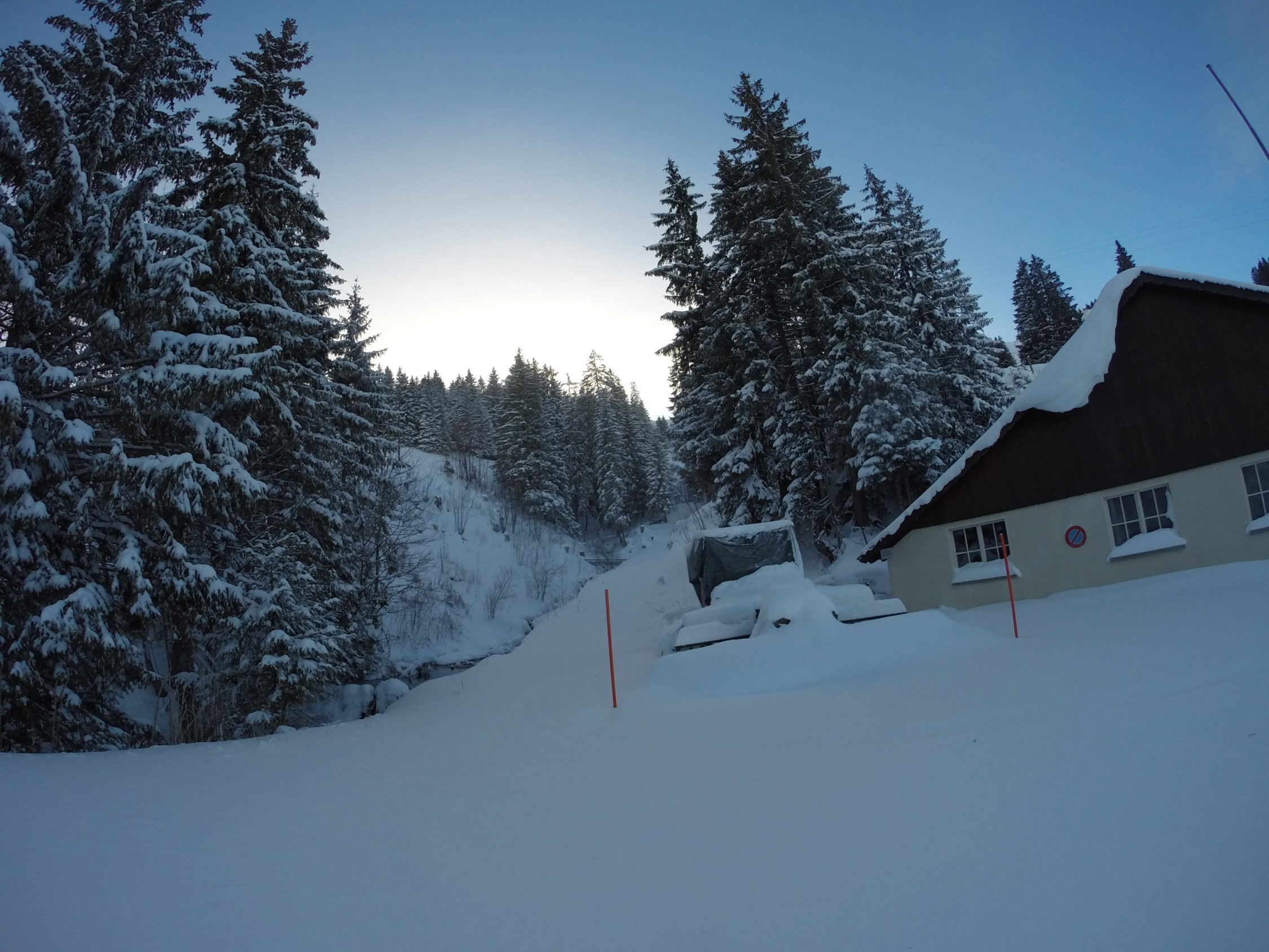 Seit mittag schneit es wieder. Es braucht noch einiges an Schnee, bis ohne Kontakt gefahren werden kann.