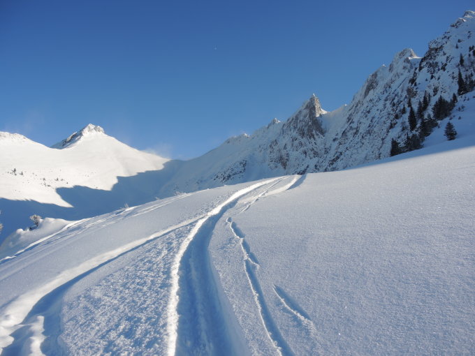 Pulver zum Teil ohne Unterlage, meist ohne Steinkontakt gut zu befahren, Frilismad sehr gute Verhältnisse