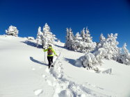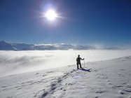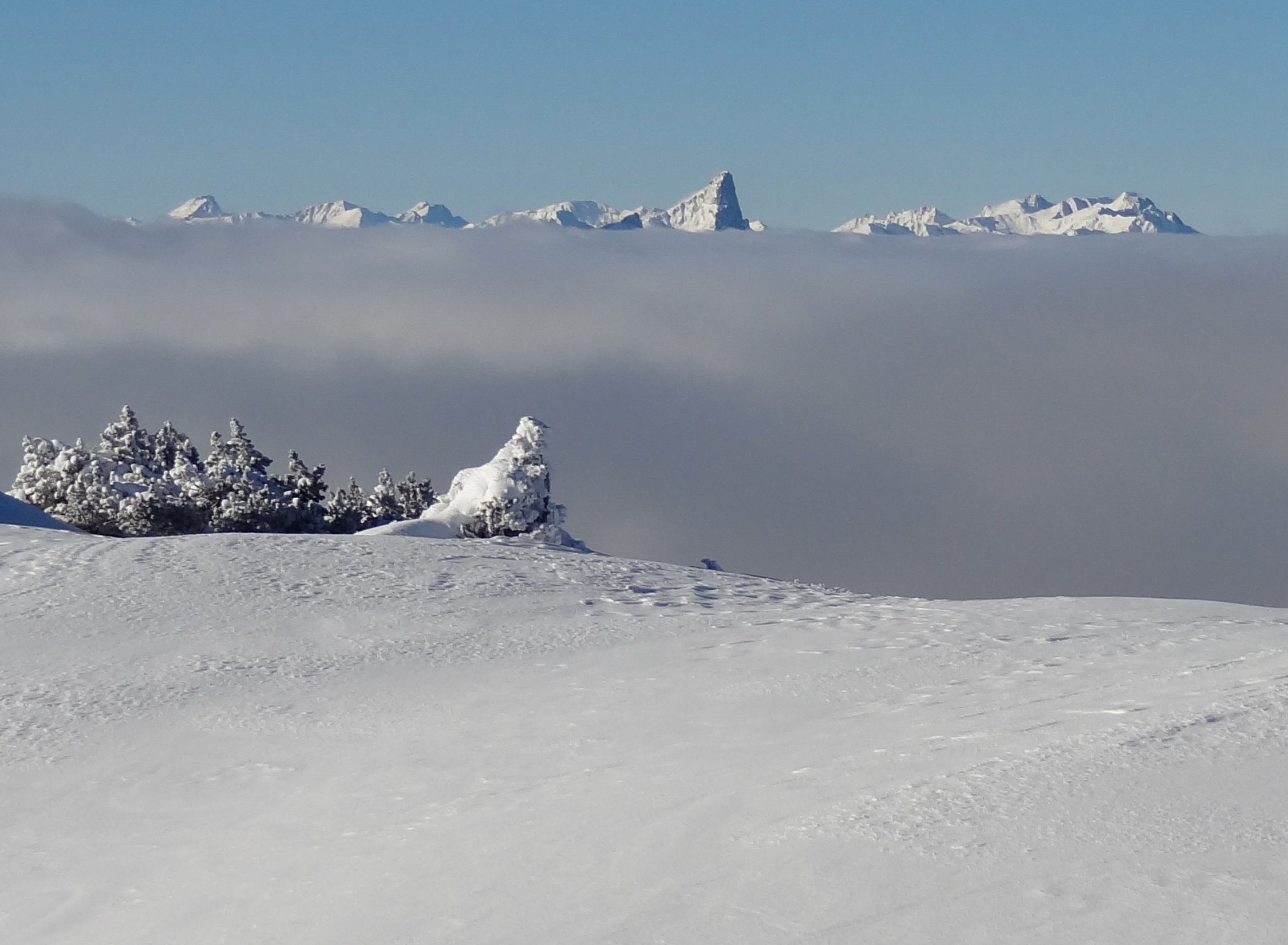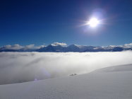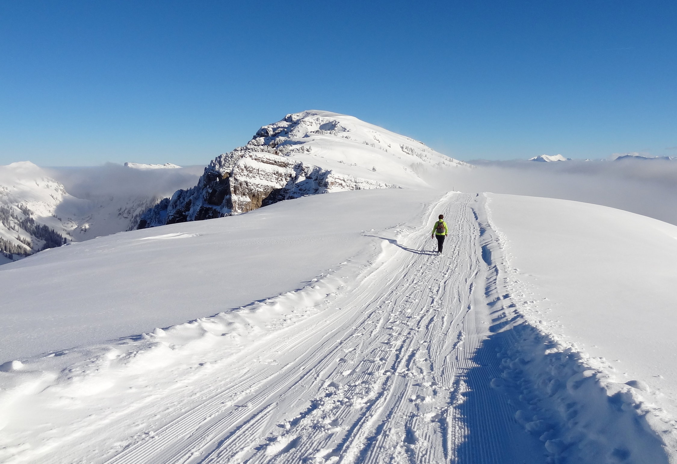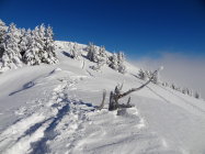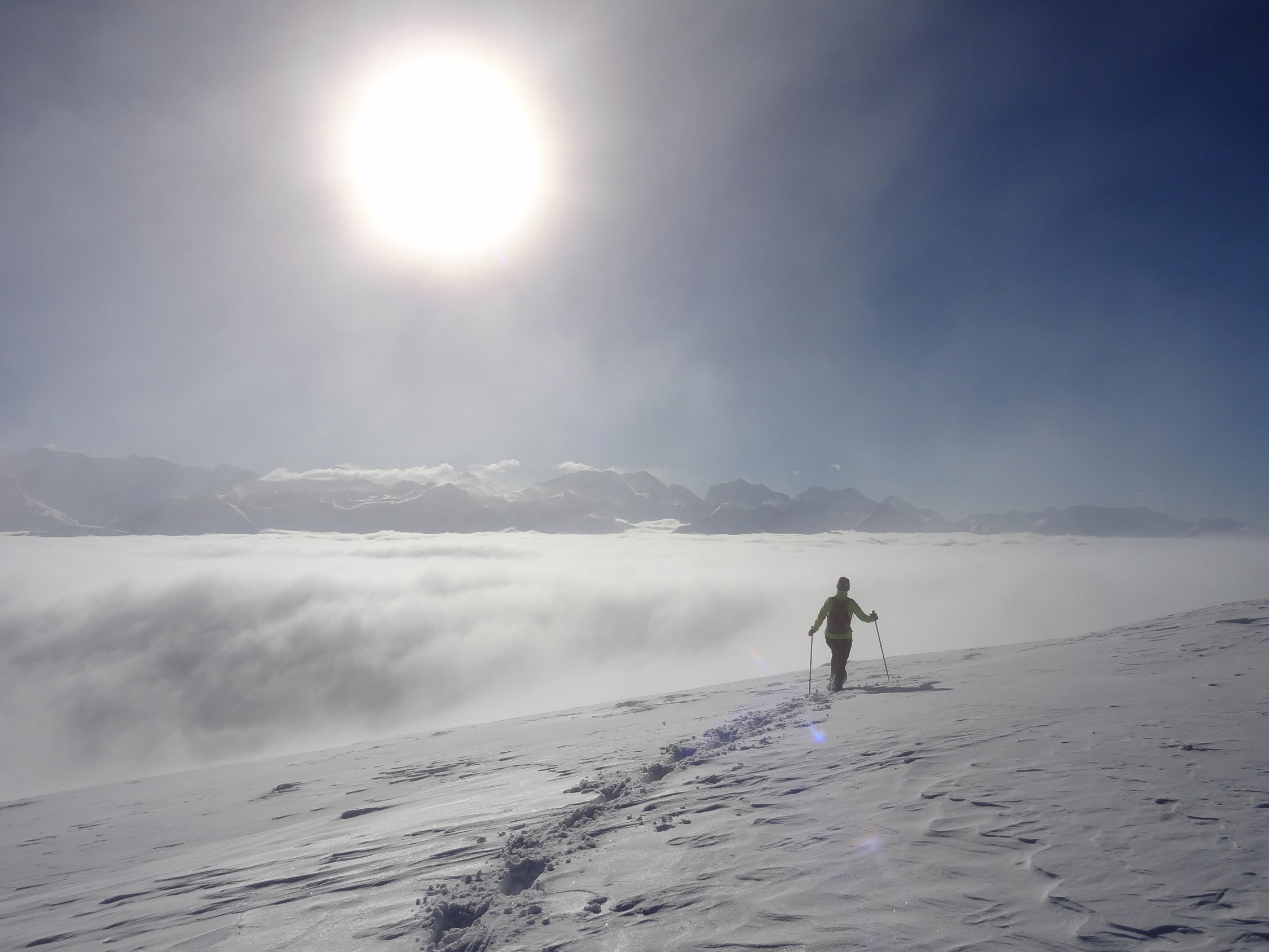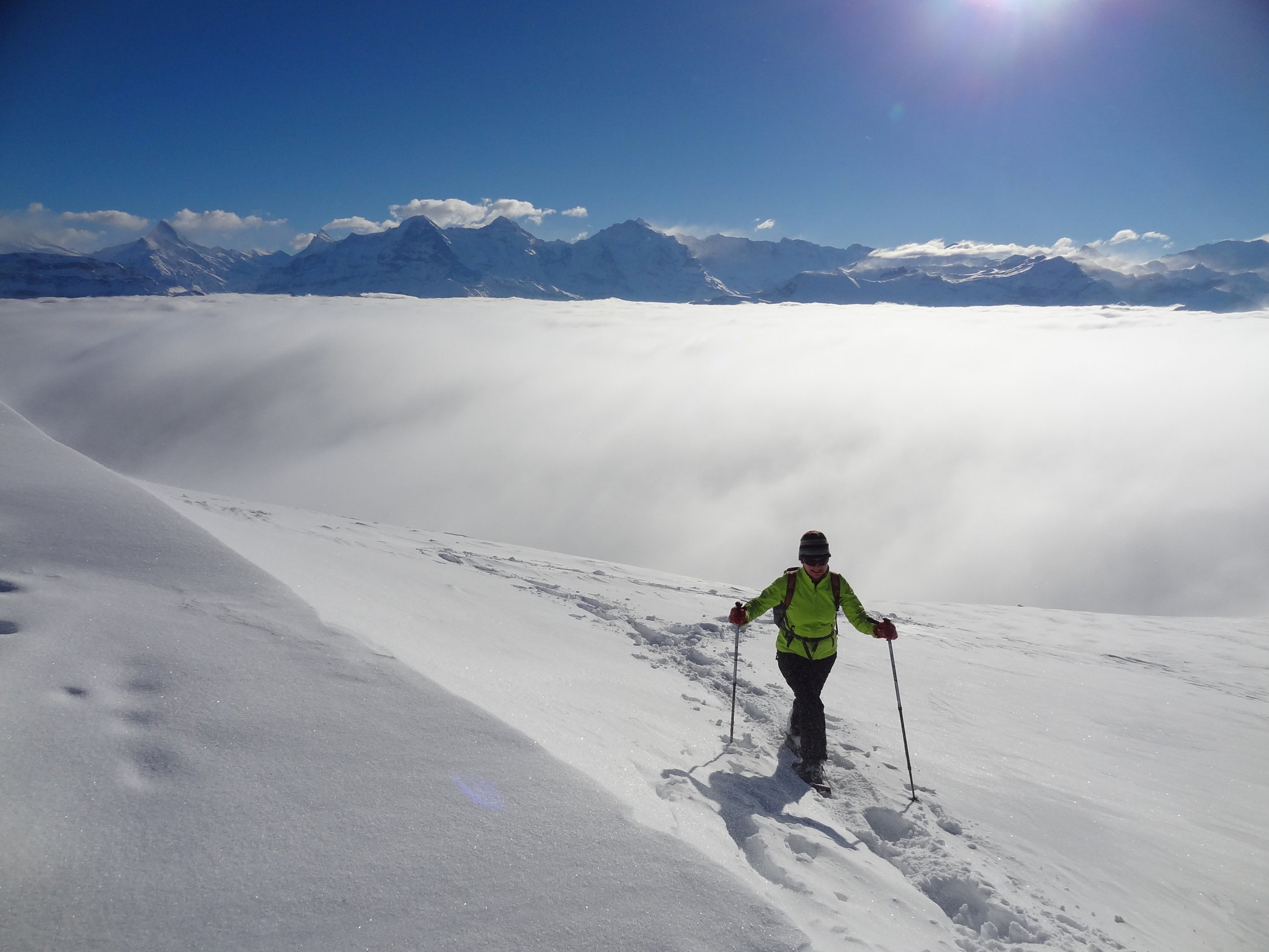 Eine, wenn man nicht spuren muss, leichte und nicht anstrengende Tour. Landschaftlich eine der schönsten Gratwanderungen. Nicht immer überlaufen. Heute waren wir allein. Den Bisenstau haben wir erst im Abstieg getroffen. Die Variante zwischen Oberburgfeld und Chüematte ist sehr empfehlenswert, aber nur wenn sie gespurt ist, sonst muss man sich das Erlebnis schwer "erschuften". Der Grund ist, dass hier der Triebschnee abgelagert wird und man somit tief einsinkt.